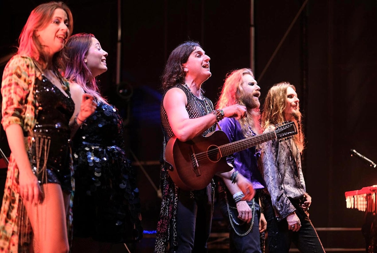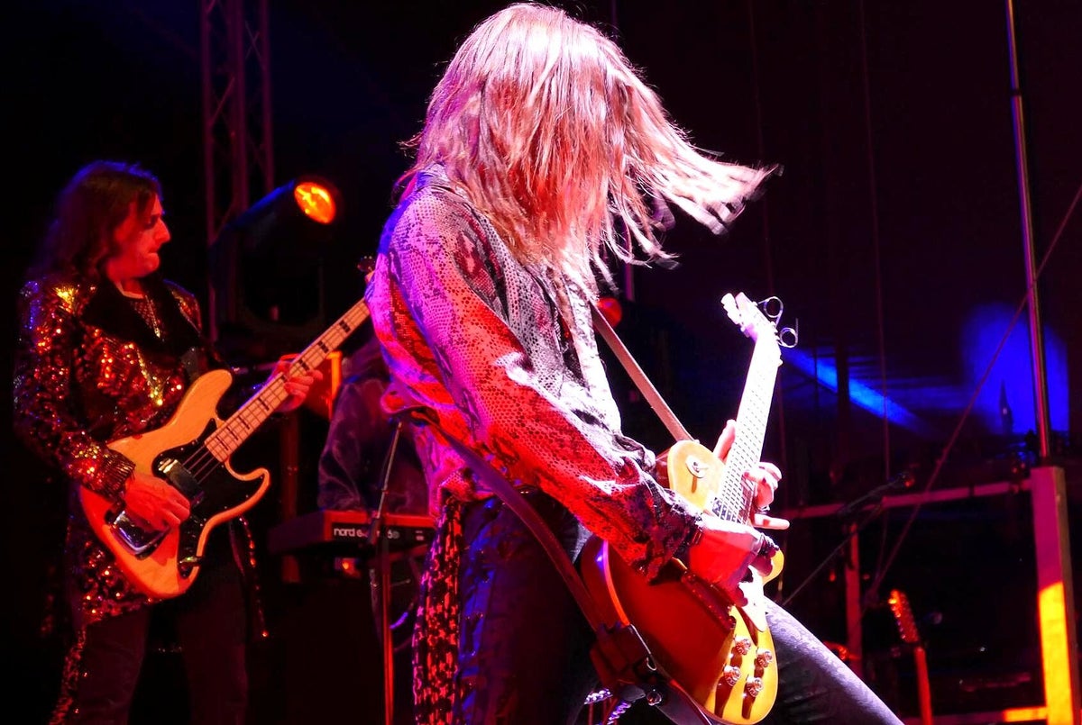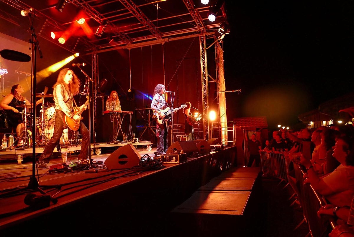 DDa passt ein 12-saitiger Gitarren-Extrahals zu einer Bassgitarre, da endet ein Mellotron-Solo in einem Duell mit einem Didgeridoo oder ein kraftvolles Gitarrenriff passt zu einem heißen Bauchtanz. Zu dem farbenfrohen, extravaganten musikalischen Universum gehören nicht nur die Musikinstrumente, sondern auch Kostüme, Make-up, psychedelische Atmosphäre, Humor und Sinnlichkeit. Ein überlebensgroßer, leuchtender Schmetterling in Person der Gitarristin, Sängerin und Theremin-Pilotin Mary Reynaud (Die Schöne) wird über die Bühne flattern, während die bezaubernde Fee, Léa Fernandez (Éléonore Duclaux: Une EP), hinter dem Schlagzeug den Takt angibt, zeigt der Gitarrist Barth Sky (Der Diabolische) lupenreine Metal-Attitüden und zu guter Letzt steuert Cedric Selzer (Das Biest) im Hintergrund die Keyboard-Klangteppiche bei. Wer sich dieses Rock-Theater schon anhören möchte, dem empfehle ich das Album The Answer Live (2023). Für den Musik-Freund, der nicht nur hören, sondern auch Action, Theater und Show auf der Bühne erleben will, sind Franck Carducci & The Fantastic Squad genau das Passende. Bider oben: Art-Rock-Festival 2024 Reichenbach Vogtland, Bild unten: Promo Band, Bilder oben_Text: Roland Koch