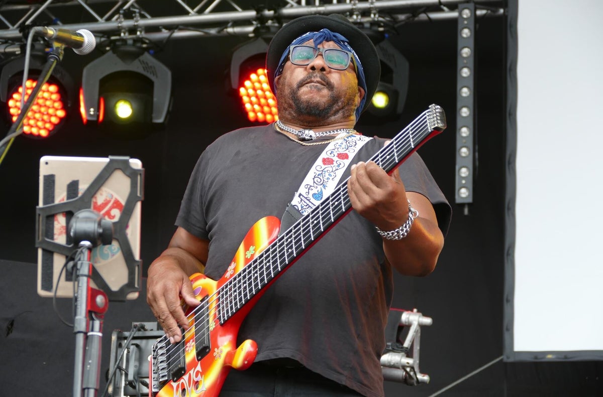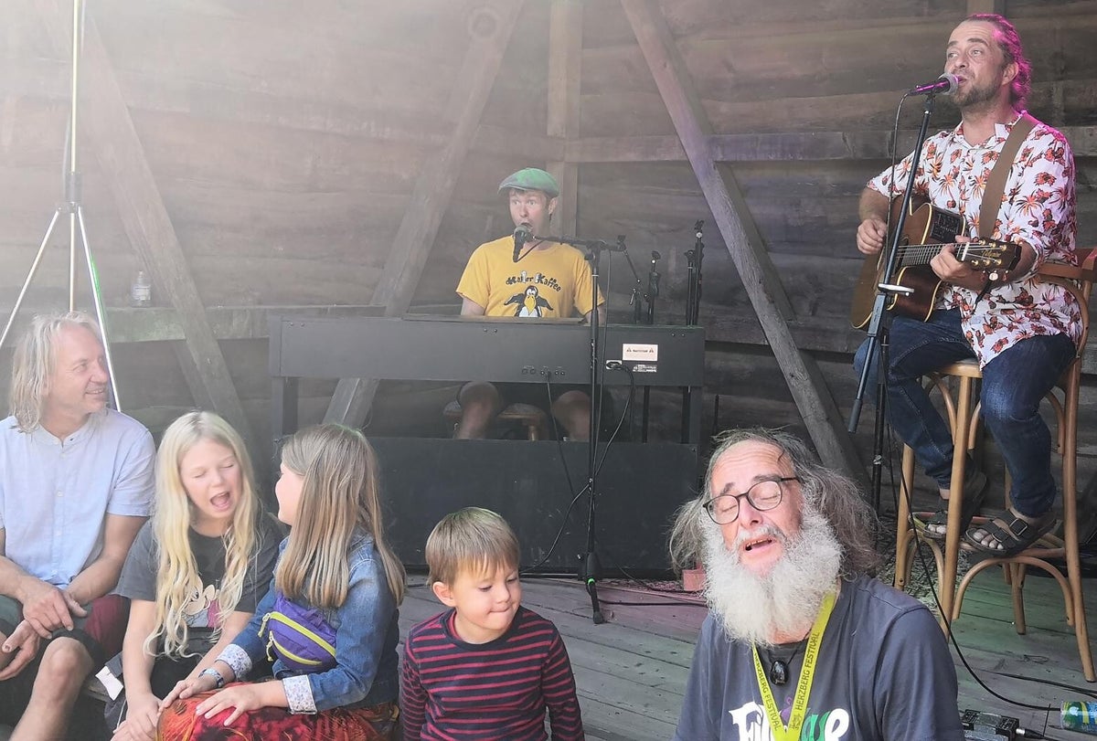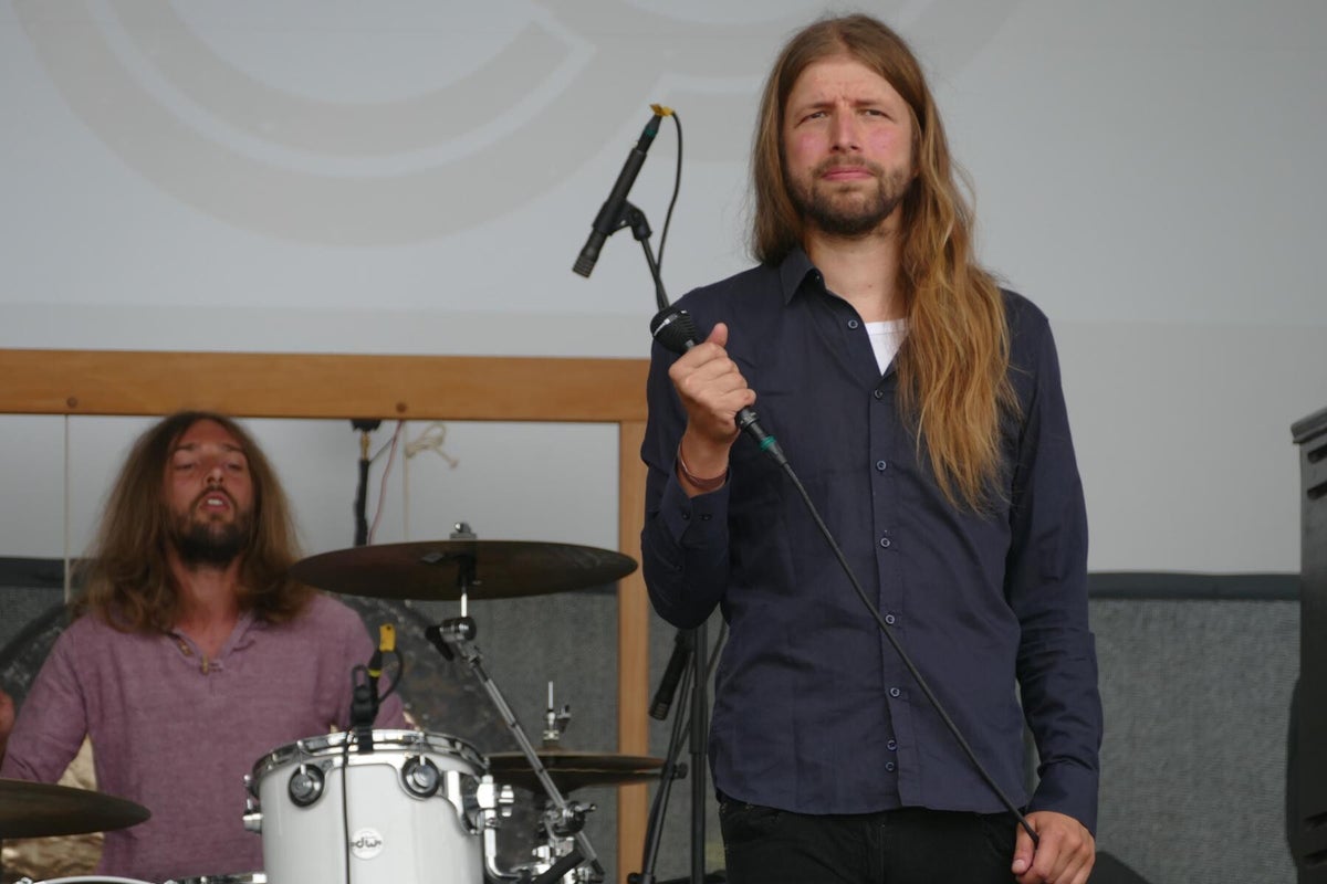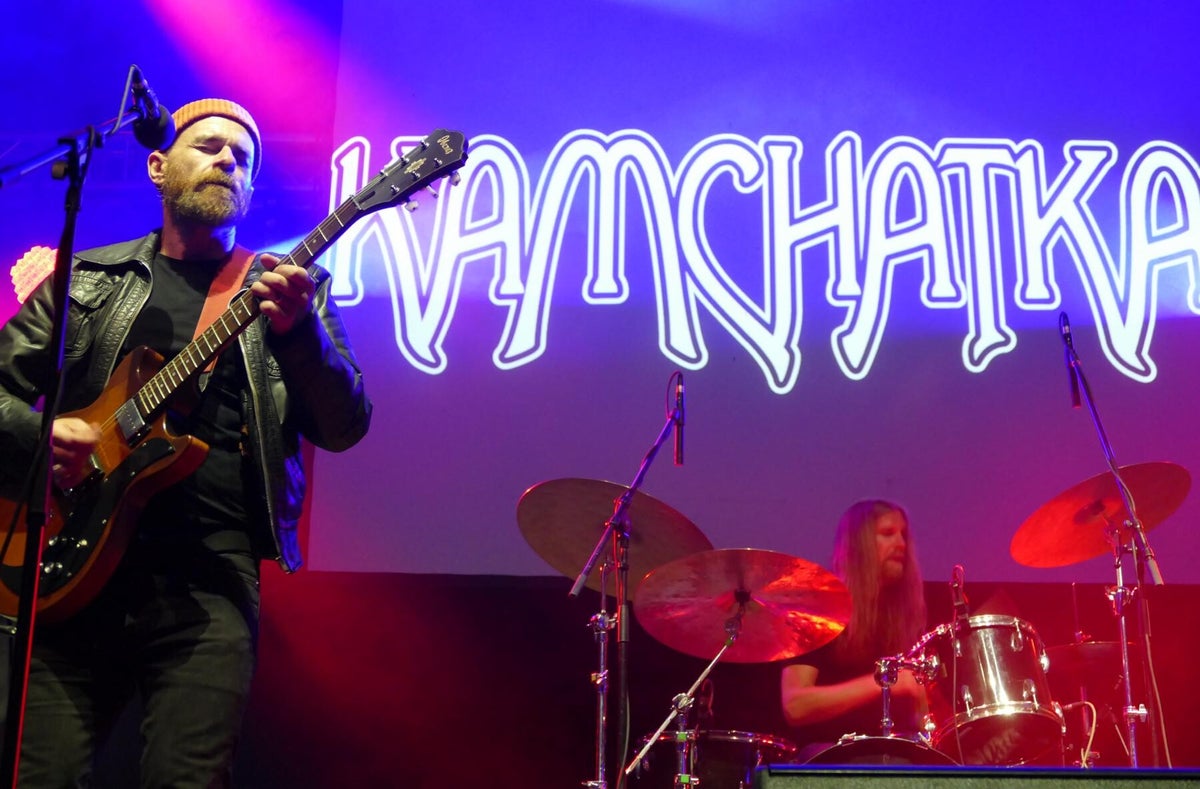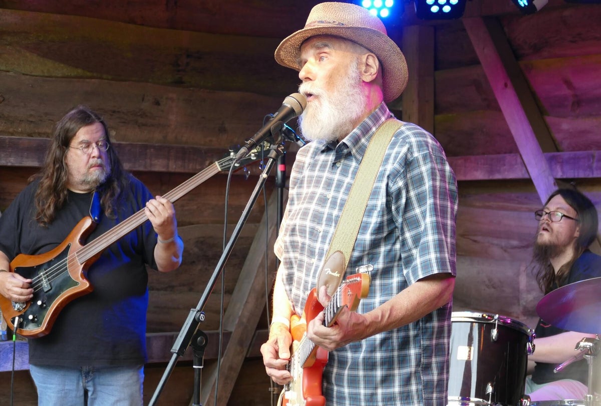 Haupt-Bühne – ATEMBERAUBEND wie Veranstalter Melanie und Michael das Thüringer Woodstock Forever Festival weiterentwickelt haben. 3 vollgepackte Tage, 3 exquisite Spielstätten, dort jeweils täglich 3 Konzerte, macht 27 Formationen Non-Stopp ohne zeitliche Überlappung und immer gut platziert sowie mit ausgezeichneter Spielfreude. Inzwischen Maßstab in jeder Hinsicht; Infrastruktur, Künstlerauswahl, Emotionalität; eben auch die gesamte Bühnentechnik inklusive Bedien-Personal ist Premium-Niveau. Das ist auch der Grund für diese üppige Berichterstattung. Und die Stars der Szene geben sich hier inzwischen freudig die Klinke in die Hand, besonders auf der Bühne unten an der Backstage-Scheune. Hierüber geht es nun im letzten Teil zu berichten. Die untere Bühne, abgeschirmt und am weitesten vom Camp entfernt, startet das geplante Tages-Programm als letzte Spielstätte, damit findet dort auch akustisch abgelegener von Frühschläfern und Ruhesuchende der Abschluss bis in die Morgenstunden statt. 2021 waren noch die alten Kraut-Rocker die dominierenden Künstler, diesmal die Blues-orientierten Formationen. Über viele habe ich im vorangegangen Text berichtet. Bereits Mittwochabend gab es Blues-Rock mit Sixty Amp Fuse und Voodoo Room, nach einer kurzen Nacht wird daran mit den Berlinern East Blues Experience genauso druckvoll angeknüpft. EBE wurde Anfang der 90er von Gitarrist Peter Schmidt gegründet, Ronny Dehn (Schlagzeug) und Jäcki Reznicek (Bass), beide auch Silly-Urgesteine, sind seitdem treue Weggefährten und mit Adrian Dehn auch heute an Bord. EBE haben massig eigenes Material, nach einer längeren Pause sind sie aktuell wieder taufrisch unterwegs, präsentieren wie eine US-Südstaaten-Band souverän das Material vom Album Live und Make It Better. Und auch der Mittelteil des Donnerstags bringt mit Man Legenden ins Rampenlicht. Bass-Zupfer Martin Ace, nun seit 1971 der absolute Dauerbrenner dieser britischen Legende, wirkt immer noch vital und lebensfroh. Während des Auftritt genehmigt er sich eine Flasche Rotwein und kommt dadurch immer mehr in Schwung, reißt seine drei Kumpel Josh Ace, James Beck und Shane Dixon mit zu einem immer größeren Spektakel. Was geht denn hier ab und wohin soll das denn noch führen. Ab Mitternacht wusste ich es dann. Zu der skurrilen Elektro-Welt des progressiven Alternativ-Indie-Rock von Cato & Joost van Dijck und Gitarrist Daniel de Vries vom phänomenalen Amsterdamer Trio My Baby. Harter treibender Blues-Rock trifft auf moderne Elektro-Beats. Dass alles geschickt zusammengesetzt, mit ausgeklügelter Technik verfeinert sowie durch Licht- und Visual-Effekten verstärkt. Hier werden die Vorteile einer großen, volldigitalen Multimedia-Bühne besonders deutlich. Glasklarer, ausgewogener Klang, gekoppelt mit erstklassiger modernster Beleuchtung. Der Platz vor der Bühne ist erdrückend voll mit Feiernden, tanzend, glücklich strahlend, Publikum und My Baby verschmelzen, hier startet ein reinrassiges, sommerliches Happening. Gut, das alles Freiluft stattfindet, sonst könnte das Hallendach in den erdnahen Orbit geschossen werden. Die letzte halbe Stunde genoss ich die unglaublichen Klanggewitter der jungen Niederländer angenehm zum Tagesausklang in meinem stabilen, mobilen Kastenwagen circa 300 Meter vom Epizentrum entfernt. Dennoch vibrierten die Einbaumöbel und Plexi-Fenster im Rhythmus der dröhnenden Musik. Aber auch auf dieser Bühne ist mal Schluss, DJ Electric aus der Schweiz übernimmt, alle ruhen danach und sammeln die Kräfte die sie auch brauchen werden. Denn die furiose Blues-Orgie geht übergangslos weiter mit der Hamburg Blues Band um Chef-Blues-Stimme Gert Lange. Von Gert’s ersten glasklaren Akkord an, waren alle im Umkreis der unteren Freifläche elektrisiert. Die diesmal zu viert mit Reggie Worthy, Eddie Filipp und natürlich Krissy Matthews angetretene Combo, hatte natürlich wie immer auch für Verstärkung gesorgt, allen voran crazy Arthur Brown, Tastenbediener Frank Tischer (Miller Anderson Band), Rotwein-Liebhaber Martin Ace (Man) und Anden-Flötist Sergio Cuadros (Flor De Loto). Und was hier über zwei Stunden geboten wurde, auch wenn es für einige abgedroschen klingt, war sicher wieder eine Sternstunde des Blues-Rock sowie Woodstock Forever Festival. Die Zuschauer und Musiker waren schier aus dem Häuschen, auch zeigte sich wieder was eine gute Organisation & Technik heraufbeschwören kann. Ich habe die HBB und Gäste sicher 3-Dutzendmal erlebt, aber selbst mich hat es hier diesmal schier aus den Stiefeln gehauen. Andere Melodien, aber die gleichen starken Emotionen. Die fünf französischen eruptiven Ethno-Rocker Lazuli braucht man inzwischen nicht mehr vorzustellen. Sie haben als Live-Superstars praktisch fast jedes bekannte Festival in Europa gespielt, überall die Menschen mit ihrer atemberaubenden Qualität und purer Lebensfreude mitgerissen. Die vielen Fans die sie hier bereits kannten, waren darüber nicht erstaunt. Flor De Loto dagegen, nach 36-stündiger ermüdender Anreise aus Lima (Peru) punktgenau fit wie die indianischen Mokassins, überraschten dagegen auf ganzer Linie und wurden als Tagessieger-Samstag zum Abschluss gekürt. Was alleine diese beiden Bands an Spiel/Lebensfreude und beim Publikum an Feierlaune entfachten, steht für die ganzen vier Tage über dieser sensationellen Veranstaltung. Wie am Vortag brennt ab Mitternacht die Luft. Diesmal hat das Schweden-Trio Kamchatka die Lunte gezündet. Grundzutaten für das explosive Destillat sind ausufernde Instrumentalorgien, riffbetonte Gitarrenarbeit, klassischer Rock der Geburtsjahre, aber nicht zu vergessen, wieder mal rauer Blues. DJ Bunzel übernimmt diesmal die Spätschicht !! Die einzige der neun Bands auf der Hauptbühne die nicht direkt mit Blues im Zusammenhang steht beginnt am Samstag. Riddim Of Zion ist eine Patchwork-Künstler-Kollektiv verschiedener Nationen. Die acht Tournee- und Studiomusiker haben bereits mit vielen bekannten Größe