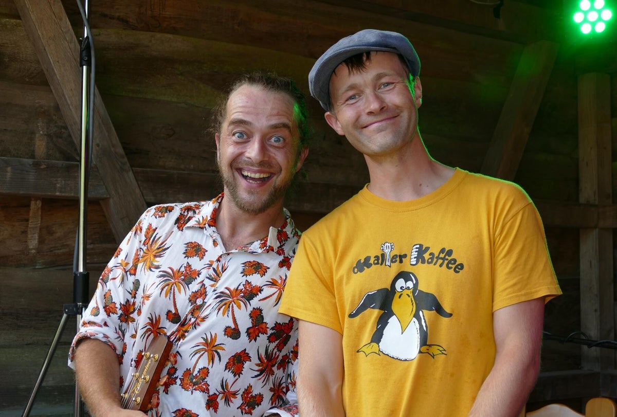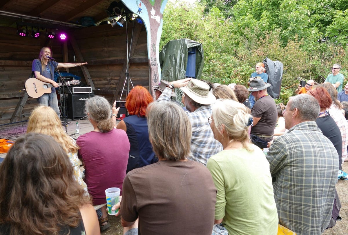 Park-Bühne – An der kleinen aber feinen hölzernen Bühne, etwas versteckt im dicht bewachsenen Park zwischen den großen Spielstätten gelegen, kommt man unweigerlich im Tagesablauf öfters vorbei. Und mit dem Duo Kalter Kaffee aus Erfurt wird mit dem passend lokalem Motto Thüringer Bratwurst hier gleich Sogwirkung zu Beginn, Lachmuskulatur wird maximal trainiert, fast überstrapaziert. Virtuose Instrumentierung mittels Klaviertaste Björn Sauer und Gitarrensaite Tilo Schäfer, ironisch-witzige Texte und unmenschlich ansteckende Spielfreude sind die Visitenkarten. Seit 2004 zusammen, über 800 Auftritte mit klugen Klampfen-Klamauk, klassischem Klänge-Klumbatsch absolviert, das merkt man diesem kongenialen Gespann an. Und schon der nächste Künstler zeigt die Wertigkeit auch dieses Park-Programms. Psycho-Gitarrist Ax Genrich, immerhin sehr früher Wegbegleiter von Elektrolurch Mani Neumeier, spielt im Verbund mit Tieftöner Edgar Türk und Trommler Daniel Schwarz im hölzernen Bühnenhäuschen eines seiner berüchtigten psychedelischen Jam-Sets. Natürlich sind die zwei letzten selbstproduzierten Alben Schwerpunkt, aber Axel G. ist für seine spontan, ausschweifenden Improvisationen bekannt, erfreulicherweise auch bei seiner eingespielten Rhythmustruppe, die für solche Space-Trips souverän immer das Fundament lieferte. Der Tag im Park wird spät unter knallbunten Kunstlicht abgeschlossen mit dem kraftvollen, klassischen Rock-Trio Bölter. Gitarrist Philip ist erfahrener Virtuose und Kopf der Band, bringt noch mehr Erfahrung durch Heiko Peter hinterm Schlagzeug und Steffen Knauss am Bass mit in die rustikale Holzhütte. Hier wurde denn auch nicht lange gefackelt, dennoch vorsichtig um Brände zu vermeiden, gibt es schnörkellose rockige Lieder mit deutschen und englischen Texten sowie reichlich Spaßfaktor für die immer noch vielköpfige kuschelige Gemeinde im Park. Erste nächtliche Pause und am frühen Freitag-Nachmittag dann die Solo-Künstlerin Luisa Laakmann aus meiner Heimat Nordrhein-Westfalen an Mikro und akustischer Gitarre. Sie hat portugiesische Wurzeln und als Straßen-Musikerin in Europa sowie Südamerika viel Erfahrung gesammelt. Deshalb ist es für Luisa auch kein Problem – nur Teppich, Mikroständer, davor rote Topfpflanze und sie auf der kleinen Bühne – die schon recht ordentliche Traube Menschen mit ihrem viersprachigen Vortrag zu begeistern und mitzunehmen. Gelebter Minimalismus, aber hier sicher nicht bei Emotionalität und Nachdenklichkeit. Ein ruhiger, gelassener Einstieg, gut so, denn mit den beiden folgenden Bands am Nachmittag The Harvest Community aus Torgau/Leipzig und zum Rausschmiss dann nächtlich Dogma’n aus Thüringen sind zweimal deutscher Southern-Rock angesagt. Schon mit dem Bandnamen der Tribut und Hinweis auf den legendären Kanadier Neil Young und sein Meilenstein-Album Harvest. Die Musik zwischen schmeichelnden Folk und geradlinigen Rock, akustische Balladen, Ohrwurm-Hymnen und wilde Jams waren sein unverwechselbares Markenzeichen. Und all das erklingt hier auf dieser urwüchsigen, bebenden Bühne; wird von vier urwüchsigen Mannen würdig wiederbelebt und nahe am Original gespielt. Und die vier Thüringer Musiker; Robert Boddin aus Weimar (Bass), Andreas Saul aus Gotha (Gitarre, Blues-Harp), Lin Dittmann aus Erfurt (Schlagzeug, Keimzeit) und Michael Rötsch aus Weimar (Gesang, Gitarre); von Dogma’n legen mit ihrem explosiven Blues-Rock später noch eine Schüppe drauf. Die Vier sind haben schon einige Stars der Blues-Szene begleiten dürfen, spielen aber in Waffenrod ihr eigenes Material. Die kurzhaarige LD-Schlag-Maschinerie konnte ich schon zwei Wochen vorher beim Aqua Maria Festival (wir berichten) mit Shotgun Valium aus Erfurt auf der Bühne bewundern. Zweite nächtliche Pause und am frühen Samstag-Nachmittag dann der niederbayerische Solo-Kabarettist und sympathische Brutal-Poet Der Weiherer. Ungezügeltes, bissiges Mundwerk und ultrakomische Alltagsbeobachtungen seit nunmehr genau 20 Jahren und alles ist inzwischen Kult. Ebenso spartanisch wie tags zuvor Luisa, bewaffnet mit Gitarre, Mundharmonika und Mikro, fesselten seine schrulligen Geschichten sowie scharfer Polit-Aktivismus sofort die versammelte Menge vor der Bühne. Besonders haben es ihm immer seine lokalen Heimat-Politiker in Bayern angetan, wie er sagte, liefern diese Sprechpuppen ständig neues gnadenloses Kanonenfutter für seine schnörkellose Plauderei und Liedermacherei. Und mit dem Akustik-Trio Three To Remember wird es danach etwas Folkloristischer, wieder kommt bei gutem Sommerwetter Südstaatenflair auf. Als letzte Band auf der Parkbühne, sorgen drei gebürtige Honks aus dem Erzgebirge mit einem Cocktail aus geradlinigen klassischen Rock der 70/80er gemischt mit einem ordentlichen Schuss hartem Blues für Feierstimmung auf der Lichtung im Wald. Eben Musik ohne Sitzpolster und Stoßdämpfer, denn die Feierbiester stehen hier nun Spalier bis fast auf die Bühne. Heute strotzen die unverbraucht wirkenden jungen Männer von Shophonks – Toni Nickl, Rene „Del“ Gläser und Max Meyer – vor überschäumender Spielfreude und reißen mit ihrem Mix aus eigenem Material vom Album Alone On The Road und Rock-Klassikern leicht die Rockfans mit. Ein sehr würdiger Abschluss, der den Slogan von Veranstalter Michael unterstreicht: „Wir sind und bleiben ein echtes klassisches Rock-Festival, wir sind für immer Woodstock!!“ DANKE, besser hätte ich es auch nicht beschreiben können.