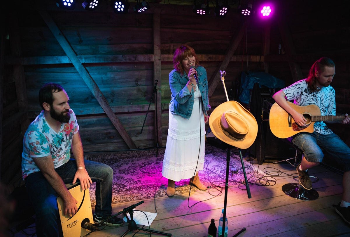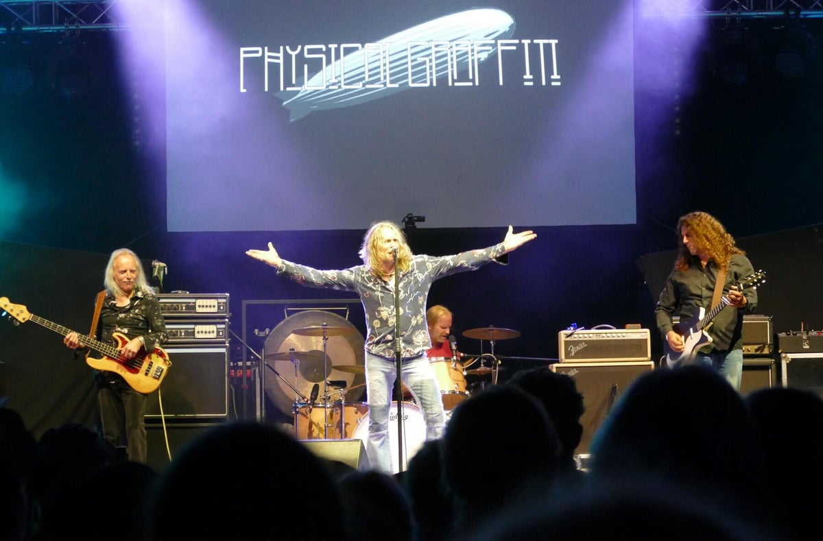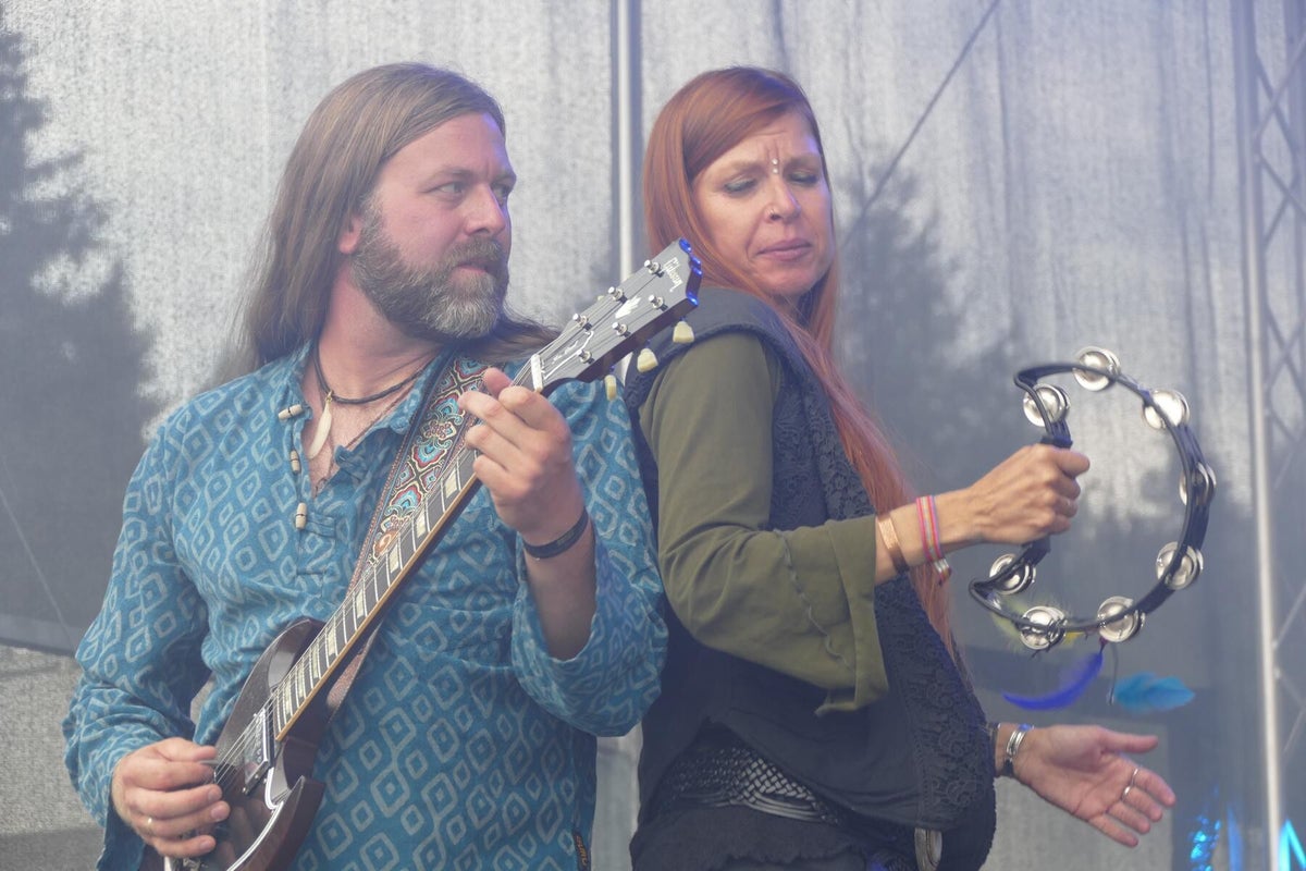 Nach nimmermüden Bemühungen der Veranstalter Michael Memm und Tochter Melanie sowie Umsetzung von einigen geforderten Auflagen gab das Motto dann letztes Jahr die Richtung an: „Wir finden statt!“ Und wie eine der wenigen großen deutschen Freiluft-Veranstaltungen 2021 stattgefunden hat, darüber berichteten wir ausgiebig. Schon letztes Jahr waren einige organisatorische Änderungen vor allem wegen der Zunahme an Besuchern unbedingt nötig. Und diese Entwicklung hat sich 2022 nun positiv fortgesetzt. Das Festivalgelände ist zwar nun per Gitternetzzäunen in Camp und Bühnen getrennt und die vorher für alle Besucher frei zugängliche obere Bühne damit Geschichte. Das aufgerüstete 4-tägige Non-Stopp-Programm ist aber nun auf zwei gleichwertige Spielstätten aufgeteilt, der Spielplan optimal zeitlich versetzt. Technik in jeder Hinsicht, hier wie dort, auf höchstem Niveau und circa alle zwei Stunden wechseln sich die internationalen Attraktionen ab. Oben die Waldbühne auf einer sportplatzgroßen Rasenfläche mit einseitig erhöhter Geländestufe, dort aber auch mit extrem guter Sicht; sowie die altbekannte Hauptbühne unten im Hexenkessel an Hang und Scheune mit toller Aussicht in das Tal Richtung Bayern. Dort fand denn auch wie immer der Abschluss des jeweiligen Tages statt: mit My Baby, Kamchatka und Physical Graffiti. Drei würdige Kandidaten die durchgängig mit glasklaren Sound für Unruhe und rhythmischen Klanggewitter vor dem späten Schlafengehen gesorgt haben. Weiterhin lud zeitlich dazwischen die kleinere sehr beliebte Parkbühne im Grüngürtel zwischen den beiden Hauptschauplätzen immer wieder zu einem zusätzlichen Konzert ein, dort gemütlicher bei Club-Atmosphäre, aber eben dennoch nicht zum Verschnaufen. Auch hier ein sehr ausgewogenes hochkarätiges Programm, das durch ständiges Verweilen Schulter-an-Schulter unterstrichen wurde. Die Ständler haben ebenso Zuwachs bekommen, man kann regelrecht von einem kleinen zentralen Händler-Genuss-Dorf sprechen, inklusive vieler Aktivitäten, Workshops, Aktionen; beispielsweise mit Yoga, Meditation, Malen & Färben, Nähen, Trommeln. Auch neu, mit dem Mittwoch ein vierter halber Tag obendrauf, die Eröffnung des Festivals gleich mit Volldampf voraus. Das Blues-Rock-Orchester Sixty Amp Fuse, die Bühne proppenvoll mit Musik-Personal, erst einmal mit bluesiger Mucke und danach mit Voodoo Room eine der angesagtesten britischen Tribute-Bands. Und auch schon bei diesen beiden Bands und zu später Stunde, ein enormer Zulauf nach unten Richtung Bühne zwischen Scheune und After-Show-Bereich. Dort wo dann später im täglichen Wechsel DJ Bunzel und DJ Electric ihr ruheloses Unwesen für viele Nachtschwärmer sorgen. Oben vom inzwischen optimal integrierten Restaurant, das wird von Michaels Frau gut geführt, klappt einem die Kinnlade runter. Unten auf den Freiflächen ein Gewimmel wie in einem Ameisenhaufen, selbst jetzt um Mitternacht. Ja ist denn hier Sommerschlussverkauf, nee, die Feierbiester sind ausgehungert und lechzen nach Live-Musik, kollektives Feiern, sommerliches Nachtleben. Und das bekommen sie fast 4 Tage lang Nonstop bei bestem Wetter geboten. (Unten Mitte: Michael Memm & Tom, Unten Rechts: Gert Lange & Christa)