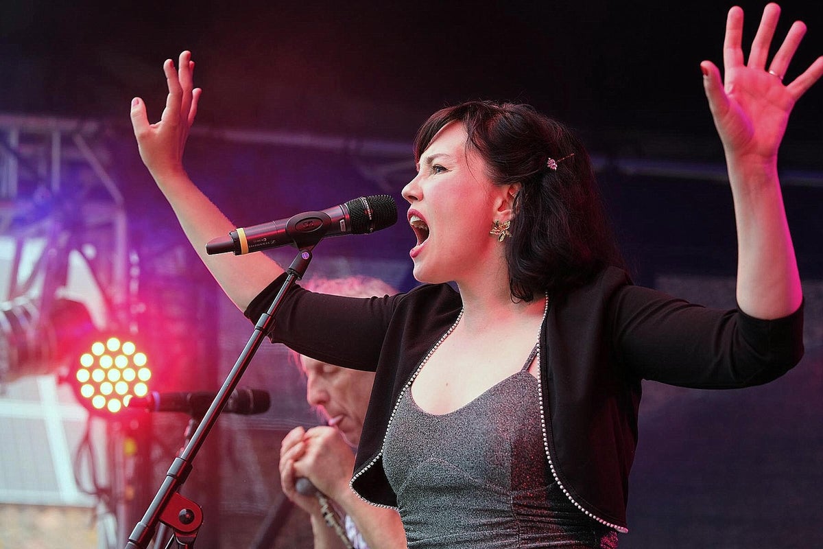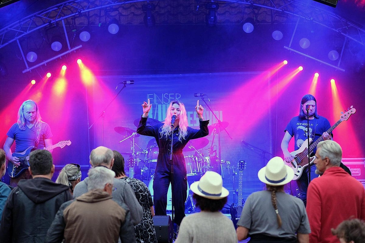 Vierseitenhof Kleukers Freitag – Wir sind in einer Gewalttour durch den Reise-Wochenende-Straßenverkehr am Freitag von Stellshagen (MVP) nach Jeinsen an der Leine südlich der Landeshauptstadt Hannover angereist. Da war die kurze Fahrt von der Herberge in Pattensen in das idyllische Jeinsen eine echte Wohltat. Aber als wir von Pattensen in Richtung Festival-Dorf und an allen Spielstätten (Gasthof, Kirche) vorbei zum Hauptschauplatz Vierseitenhof Kleukers fuhren, wurden wir entspannter. Als wir die gut besuchte Arena beraten war schon einiges los im Karree. Es war auch sehr angenehm, gleich beim Eintreten in den Vierseitenhof Kleuker von Hofbesitzer Anke & Günter Kleuker bekannte Gesichter zu sehen. Dort begrüßte uns freudig Nicole aus dem Organisationskomitee und brachte uns auf den aktuellen Stand. Ihren Mann Tino trafen wir später auch im realen Einsatz, er ist für die Medien-Präsentation zuständig. Ein wunderbares Pärchen, denen die Leidenschaft für IHR Jeinsen-Blues-Festival förmlich aus allen Poren dringt. Ohne diese wunderbaren Helfer ist so eine Veranstaltung leider heute NICHT mehr möglich und wir befürchten, der Kulturverfall wird zunehmen. Aber wir denken positiv: Jetzt erst recht, denn jetzt wird richtig in die Hände gespuckt und wir Erhöhen das Brutto-Kultur-Produkt (frei nach Geier Sturzflug). Leider waren diesmal in der Scheune keinerlei Kunst-Ausstellungen, nur ein Fotograf aus dem Niederrhein präsentierte einsam seine schönen Bilder. Anja Tschenisch aus Leipzig ist eine sehr quirlige Sängerin, hat seit 2016 in der Rhythm’n’Blues-Band Trouble Ahead bereits viel Bühnenerfahrung gesammelt. Sie wurde von Frank Rihm (Rihm Shots: Harmonika, Gesang), Marius Labsch (E-Piano) und Andreas Bock (Schlagzeug) unterstützt. Der Auftritt brachte sofort Leben in die Bude und verstärkt Blutfluss durch die Körper, heißt die Zuschauer waren in Bewegung. Damit war der erste Teil vom Staffel-Rennen Ladies Night gut bewältigt, der Wechsel mit kurzen Umbau auf der Bühne, war erfolgreich vollzogen und die zweite Dame des Tages, Vanja Sky aus Kroatien, brachte mit ihrem Repertoire aus beinharten modernen Bluesrock die Bühne zum Beben. Sie promotet aktuell das in einem Club in Kassel aufgenommene Live Album Access All Areas Live (2025). Sie trat in Jeinsen in einem blauen ganzteiligen Hosenanzug auf, damit stachen ihre ultrablonden noch deutlicher hervor. Aber dadurch wurde auch die Distanz zwischen den drei Männern und ihr sehr klein. Das Repertoire des Quartetts aus Eigen- und Fremdkompositionen war sehr ausgewogen. Vanja zog souverän alle Register, drehte Gitarre spielend wie letztes Jahr Abi Wallenstein eine große Runde durch das Publikum, verteilte sogar Geschenke. Mit dem deutschen Frauen-Trio The Silverettes, mit männlicher Gitarren-Unterstützung, kam dann im nächtlichen Blues-Areal richtig Stimmung auf. Die drei Frauen an Schlagzeug, Kontrabass, Gitarre (und Ukulele), gekleidet mit gleichen gestreiften Shirts im passenden Schwarz-Weiß, brachten den Blutdruck der Zuschauer wieder in ungesunde Bereiche. Der Gitarrist sagte mir lächelnd im hautnahen Einsatz meinerseits: „Du machst mich nervös“, nee nee mein Lieber, das waren wohl eher die drei Damen, die mit Volldampf das Karee im Hof eroberten. Mit Rockabilly und Doo-Wop zum Mitfeiern und auch Mittanzen ging es in die angenehme milde Sommernacht. [B_T: Christa & Roland Koch]
