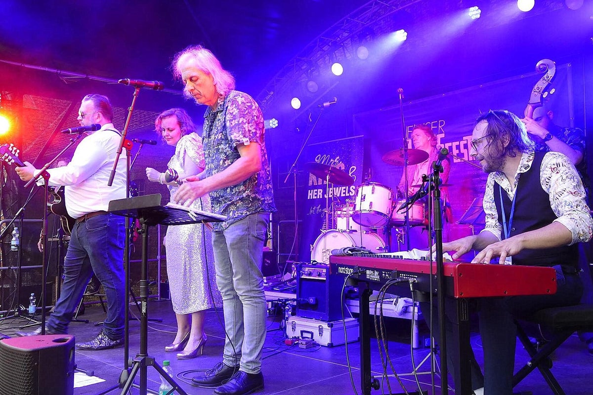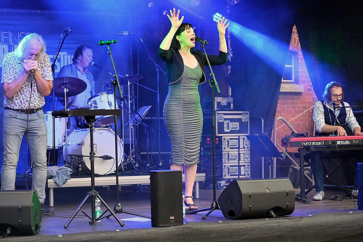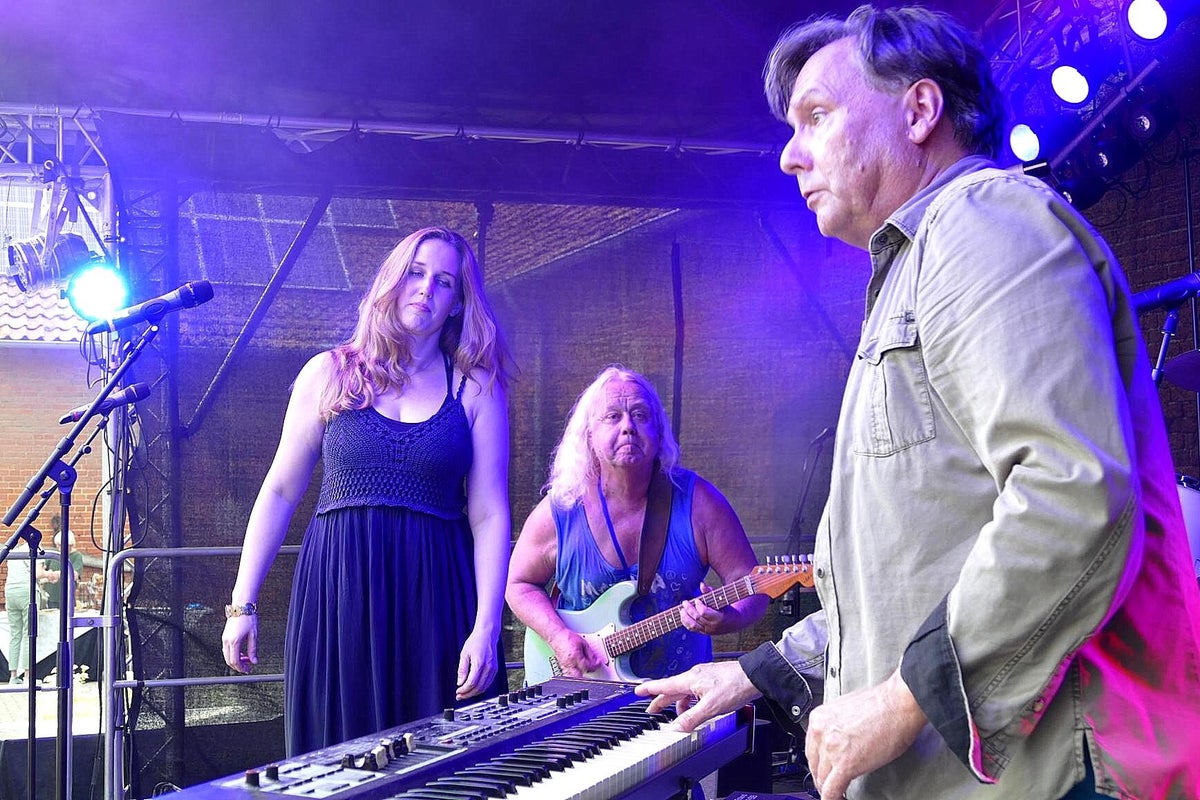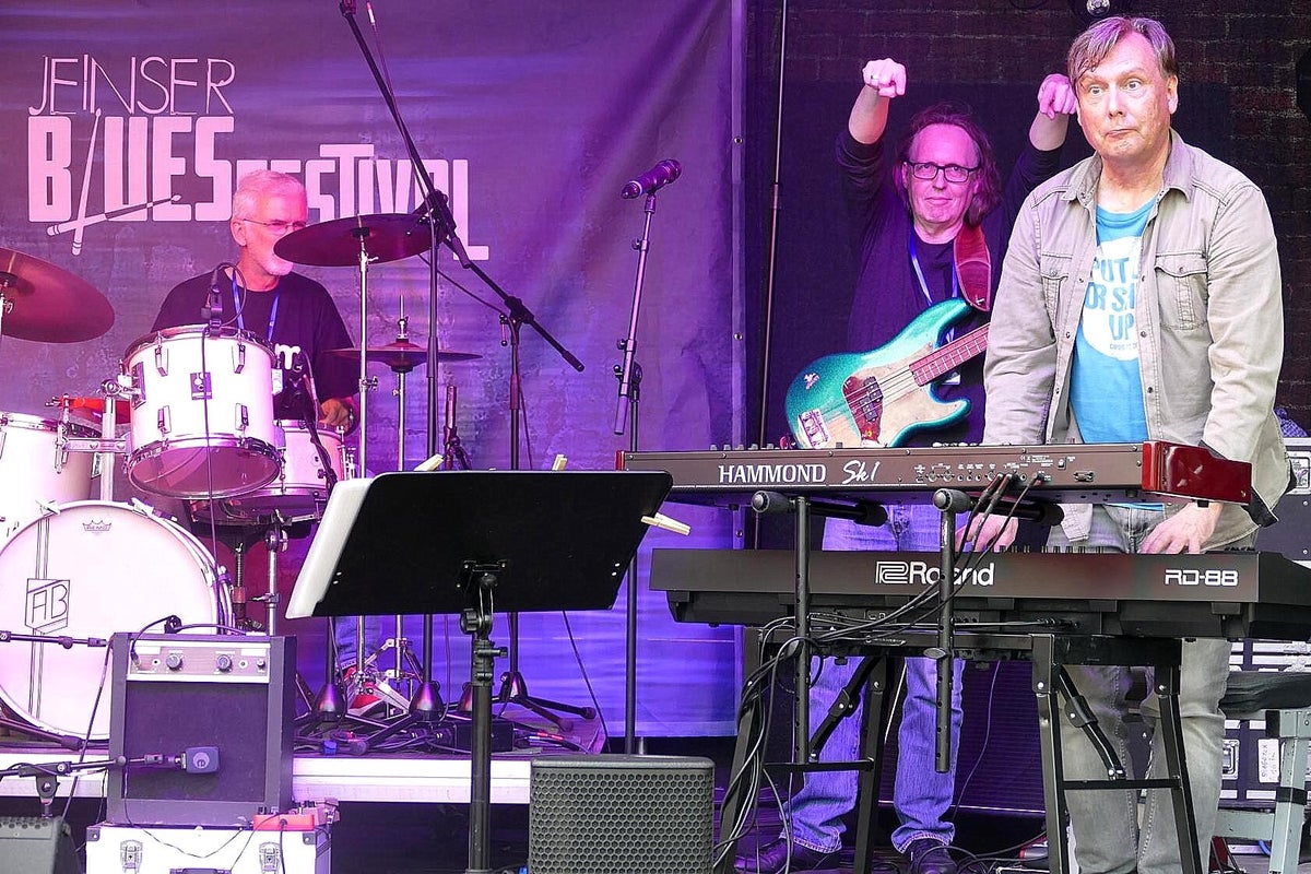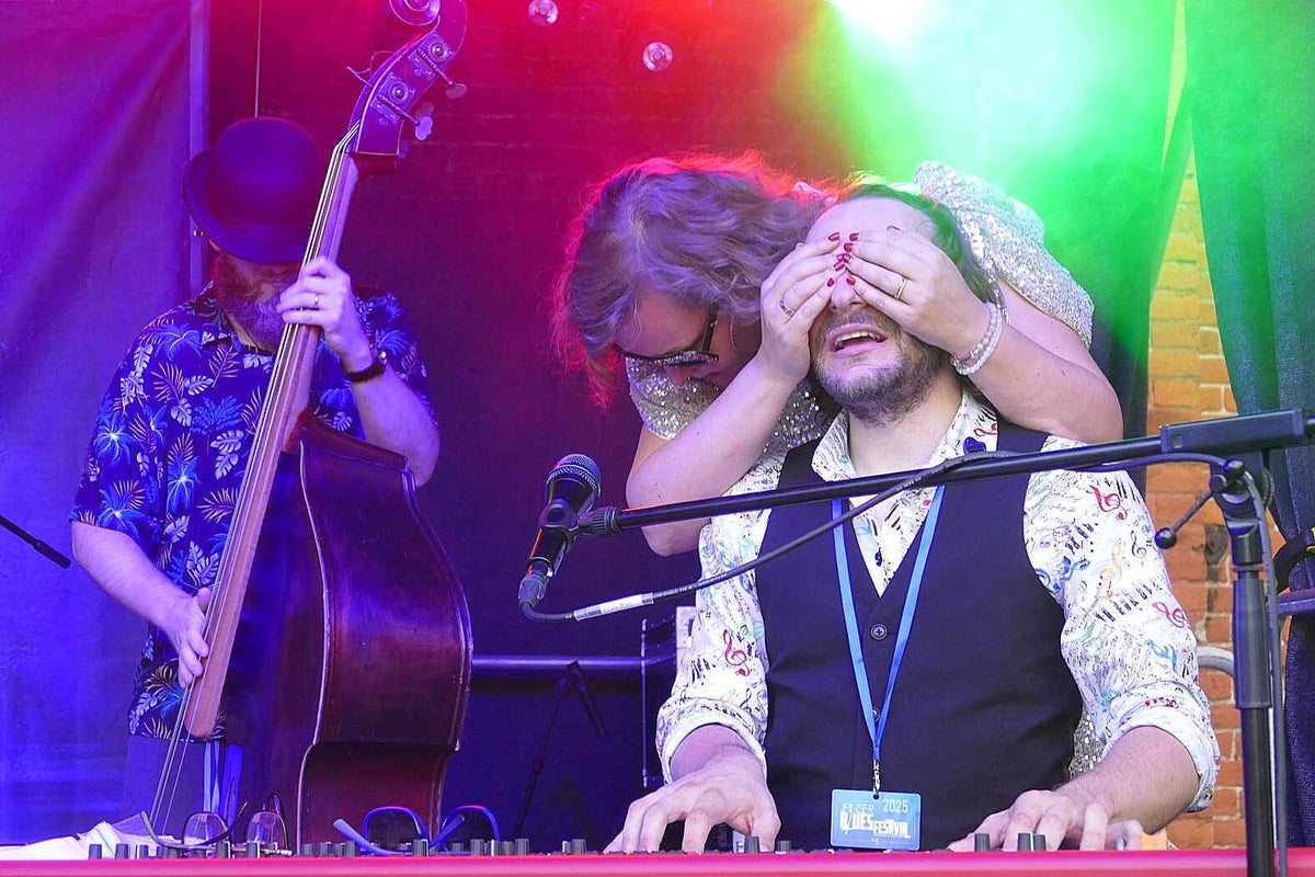 Kathrin & Andreas Bock – Der Festival-Veranstalter aus Pattensen und deren Team hatten es wieder mal geschafft, 14 Formationen an vier Tagen auf drei völlig unterschiedlichen Bühnen. Da müssen sich bezüglich Kulisse selbst die Mega-Spektakel an der Bastei, Elbsandsteingebirge in Sachsen oder der Störtebeker in Ralswiek auf Rügen oder Karl-May-Spiele Bad Segeberg mächtig ins Zeug legen. Hier in Jeinsen ist nichts Kulisse, hier findet sogar an den Festivaltagen alltägliches Leben statt. Es hatte sich wieder eine ordentliche Anzahl unterschiedliches Besucher an allen vier Spielstätten versammelt. Die Blues & Jam-Night am Festival-Mittwoch startete traditionell im großen Biergarten des Land-Gasthaus Jeinsen mit einer Allstar-Blues-Band, Best Of Jeinsen Jam Band. Weiter ging es von Country und Folk bis hin zu mitreißenden Beats aus Ragtime und Swing. Das wurde vom italienischen Akustik-Duo Red Wine Serenaders aus Mailand geboten. Sie musizieren seit circa zwei Jahrzehnten zusammen und haben inzwischen auch schon fünf Alben veröffentlicht, hier zeigt sich also wie vital und breitgestreut die europäische Blues-Szene immer noch und die geballte musikalische Erfahrung ist. Sängerin Veronica Sbergia ist ein Energiebündel, spielt auch herausragend Bariton-Ukulele, Kazoo und Waschbrett. Ihr Kongenialer Partner Max De Bernadi ist ein großartiger Blues- und Ragtime-Fingerflitzer. Die beiden werden auch bei der Blues-Kreuzfahrt 2026 (Ankündigung kommt demnächst) von Kiel nach Cuxhaven an Bord der MS-Deutschland für Stimmung sorgen. Zum Abschluss des Eröffnungstages dann noch die heimische Blues Band Lucky Beggar & The Dirty Keys aus Hildesheim. Die Band um Pianist Lucas Bente machte den Tag rund und sorgte für ordentlich geballten Blues-Rock.