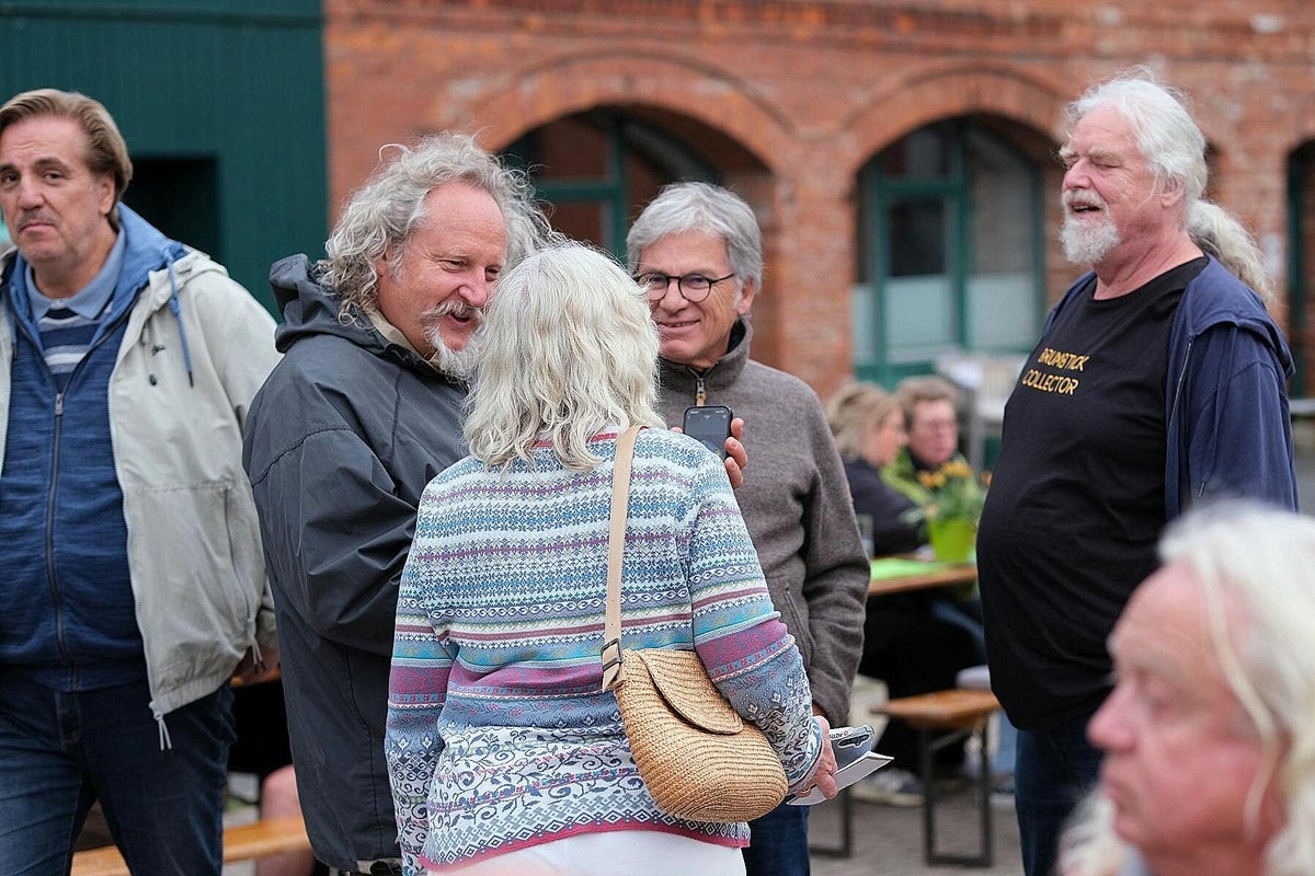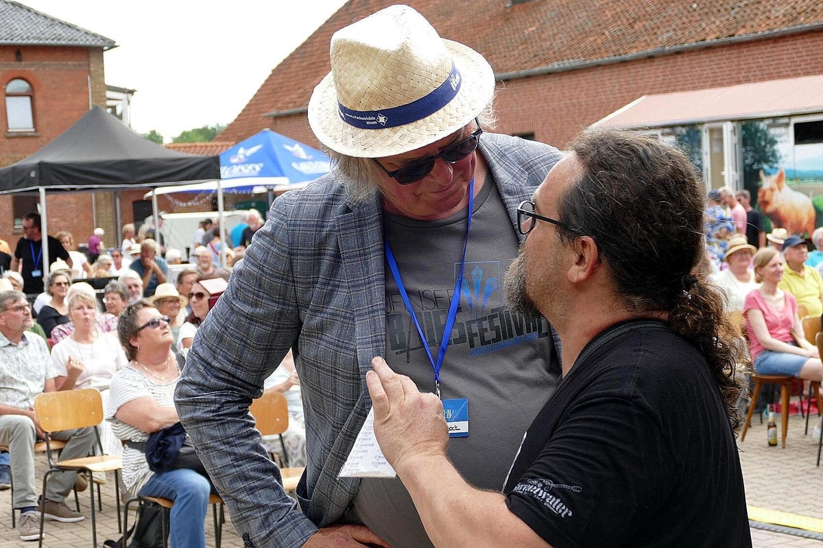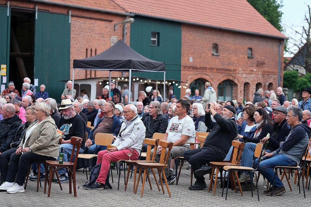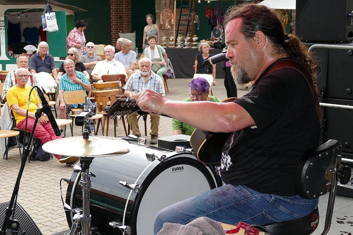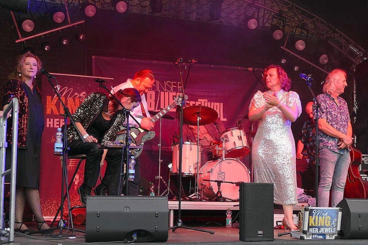 Vierseitenhof Kleukers Samstag – Am Abschlusstag gibt es mit fünf Formationen noch einmal acht Stunden Blues in vielen Stilen, von Ein-Mann-Band Olivier Mas bis 8-köpfiges Orchester mit drei Sängerinnen Mrs King & Her Jewels. Der Veranstalter aber auch alle Bands und Besucher hatten Glück, denn Wetter und Programm waren durchgängig gut. Samstag am frühen Nachmittag geht es schon wieder übergangslos in die letzte Runde, na ja ein paar Stunden geruhsamen Schlaf sollten dann schon sein. Mit der französischen Ein-Mann-Kapelle des Multiinstrumentalisten Olivier Mas (2024: One Man Swamp Boogie) wurde minimalistisch und mit moderatem Tempo gestartet. Aber beim Vortrag von Olivier hatten man nie das Gefühl das ein zusätzlicher Mitspieler unbedingt notwendig wäre. Andreas Bock war begeistert wie wir und nahm aus den Händen des französischen Künstlers gerne eine seiner CD’s entgegen. Mit der Formation Hörbie Schmidt Band (2019: Ich Liebe Den Blues) aus Kiel, unterstützt durch Frontsängerin Lili Czuya, wurde dann die Gemeinde nach kurzer Umbaupause kraftvoll mit einem musikalischen Weckruf wieder zusammengetrommelt. Handgemachter ehrlicher Blues mit deutschen Texten, die waren auch in Göhren beim Blues Camp 2025 von Deutschlands Harmonika-Lehrer Dieter Kropp gut angekommen. Was ein Kontrast. Bei Mrs King & Her Jewels war danach die Bühne mit acht Musikern proppenvoll. Auch Meike König alias Mrs King hat schon alle Bühnen in Jeinsen mehrmals gestürmt und das Publikum mit verschiedenen Programmen verzaubert. Mit Peter Schmidt und seinem erdigem Bluesrock-Trio Dodge Boogie wurde der Schubhebel wieder ganz nach vorne auf Anschlag geschoben. Der Ausklang des Festivals am Samstag mit dem Piano-Rocker Andy Lee & His Rockin‘ Country Men aus der Landeshauptstadt Hannover. Wie am Vortag mit den The Silverettes war noch einiges „Los im Hof“ und es wurde erneut mächtig getanzt und gefeiert bis weit in den Sonntag hinein. [B_T: Christa & Roland Koch]