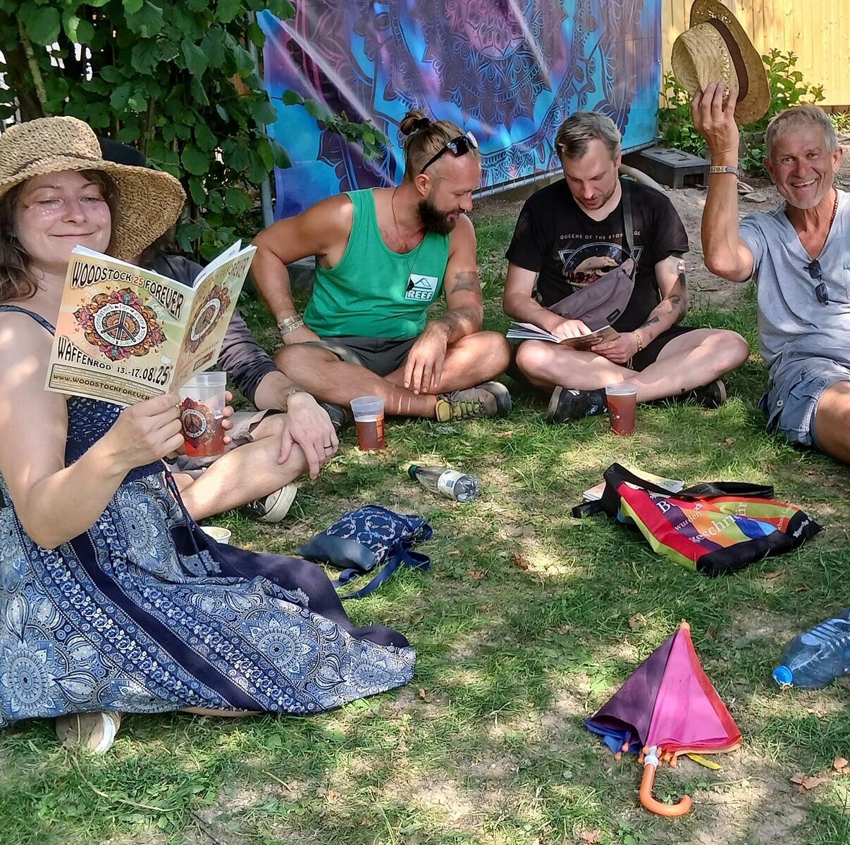 Als Nachwort zur Halbzeit nur noch kurz: Keine der am Mittwoch und Donnerstag aufgetretenen 11 Formationen hat überwiegend Cover-Songs gespielt, sondern, wenn überhaupt, wurde mal ein Klassiker wie beispielsweise The Four Horsemen (Karin Rabhansl Band) oder Johnny B. Goode (Sixty Amp Fuse Featuring Stephan Graf) völlig neu interpretiert. Einzige Ausnahme: The Watch hat ein Plays Genesis Programm gespielt, klebte mit ihren italienischen Interpretationen nahe am Original. Aber genau diese zeitlosen Titel haben sich Veranstalter Michael und tausend feiernde Fans vor der Bühne gewünscht. Gut gemacht Woodstock Forever, denn schon im Festival-Namen stecken zwei seit über zwanzig Jahren gelebte und erfolgreiche Markenzeichen. Woodstock: Das Motto Frieden, Freiheit, Liebe. Forever: Den musikalischen Helden; lebend oder schon im Rock-Olymp; Tribut zu zollen und sie für das Musikvolk unvergesslich zu machen !! Und genau das haben wir wieder, diesmal viertägig, hier im Thüringer Wald erlebt. Halbzeit-Pause, aber nur etwa acht Stunden. Die Berichte zur zweiten Spielzeit gibt es in Bericht Teil DREI und VIER !!