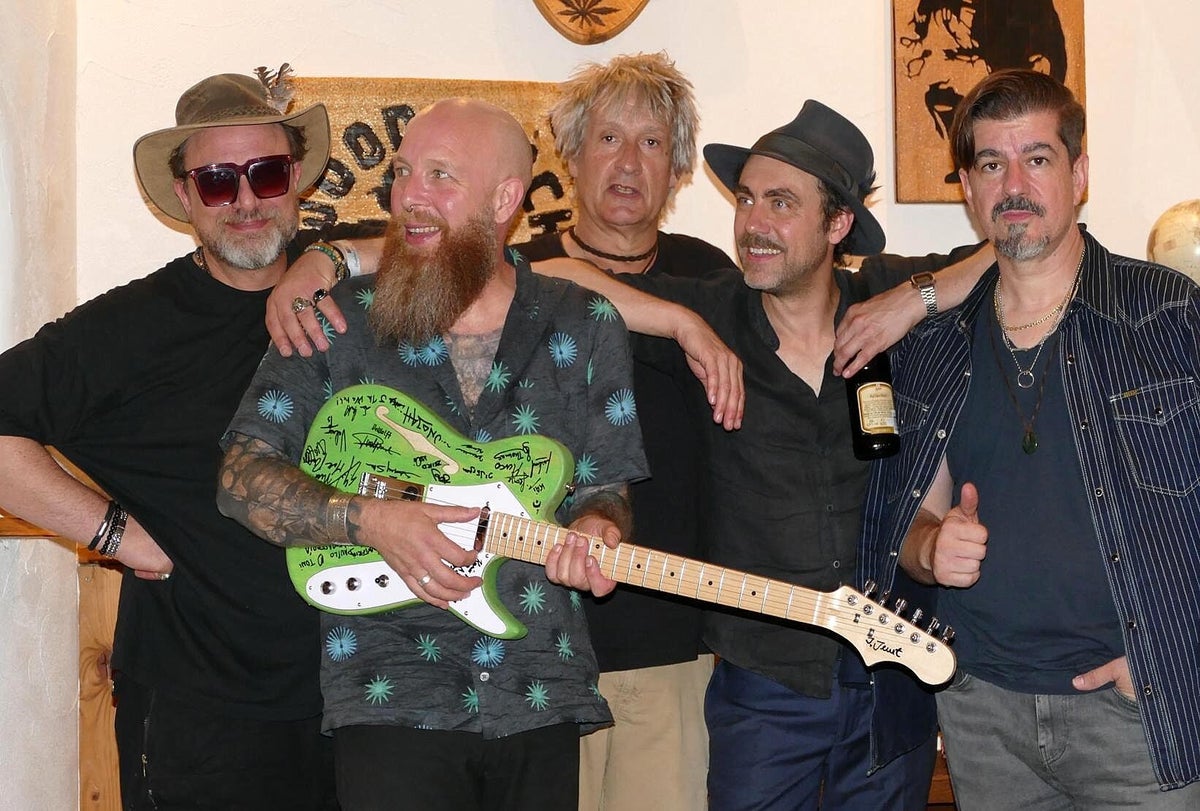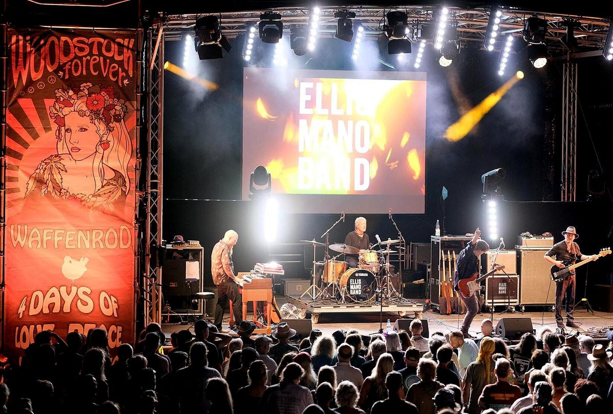 Ellis Mano Band – Sänger Christian Ertl alias Chris Ellis und Gitarrist Edis Mano sind die Namensgeber dieser erst 2016 gegründeten, aber inzwischen sehr bekannten Schweizer Blues-Rock-Band. In freier Wildbahn ein überaus lebensfrohes Quintett, wie wir später hinter der Bühne feststellen. Chris und Edis haben noch Nico Looser (Schlagzeug), Severin Graf (Bass) und Lukas Bosshardt (Keyboards) mit in den Thüringer Wald gebracht und legen, kaum auf der Bühne angekommen, los wie ein eidgenössischer Trans-Europ-Express Gottardo. Die Ellis Mano Band haben wegen der Pandemie mit ihrem Blues, Jazz- und Soul-getränkten Rock leider nur begrenzt auf sich aufmerksam machen können. Dafür sind dann seit 2019 insgesamt sechs Alben erschienen, letztjährig Live: Access All Areas und aktuell Morph und sie haben mit ihren unzähligen Auftritten inzwischen eine enorme Reichweite in ganz Europa, erreichen damit die Blues-Völker die hungrig sind nach Klang-Futter. Und das bedienen sie mit reichlich eigenen Kompositionen in einem hochenergetischen Vortrag. Sie sind sichtlich gut eingespielt, harmonieren untereinander Schlafwandlerisch. Jeder Musiker hat auch seine Freiräume, kann alle seine Stärken als Solist demonstrieren auch ohne das Gesamtgefüge dafür zu opfern. Hier haben fünf erfahrene Musiker Live bestätigt, was sie bereits auf ihren Alben angekündigt haben, Blues-Rock hat auch eine Heimat in der Schweiz.
