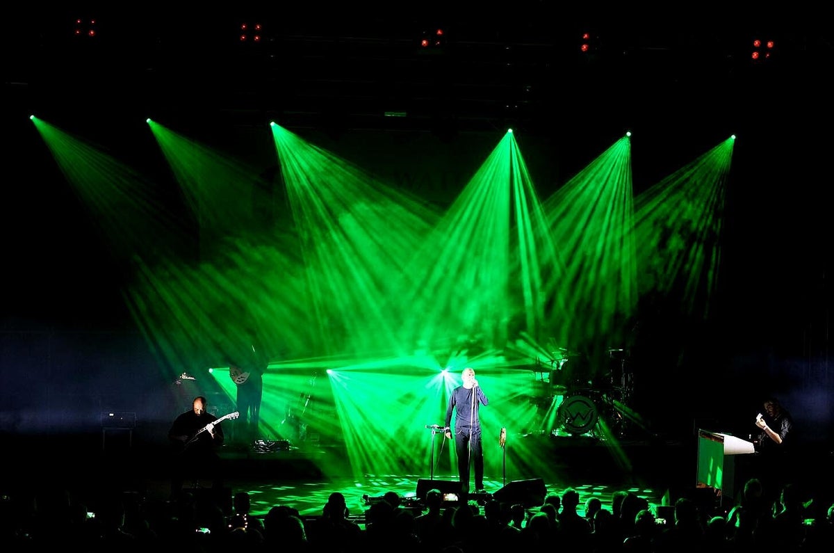 Watch Plays Genesis – Während die Dunkelheit sich über das Gelände legt, wird oben auf der Waldbühne ein großer Name in den Topf geworfen. The Watch Plays Genesis sind ein Quintett aus Italien, die die Ära von Peter Gabriel und Steve Hackett wiederaufleben lassen. The Watch starteten dabei nicht als Tribute-Band. Als Sänger Simone Rossetti jedoch seine stimmliche Ähnlichkeit zu Gabriel feststellte, erwuchs das heute erfolgreiche Prinzip einer Tribute Show. Dabei sind sie in der Prog-Szene auch für ihre Vielzahl eigener Werke bekannt, die sich auch in die Live-Shows einschleichen. Die auf Deutsch einstudierte Begrüßung wird dankend angenommen. Die musikalischen Fähigkeiten von The Watch stehen außer Frage, Klassiker werden punktgenau nachgespielt. Bei emotionalen Titeln wie Carpet Crawlers bremst die technische Berechenbarkeit aber das eigentlich entscheidendere aus: Gefühl! Dennoch beeindruckend, wie die fünf Musiker im Scheinwerferlicht die siebziger Jahre über den Wald regnen lassen. Siehe weiter unten im Nachwort zur Halbzeit.