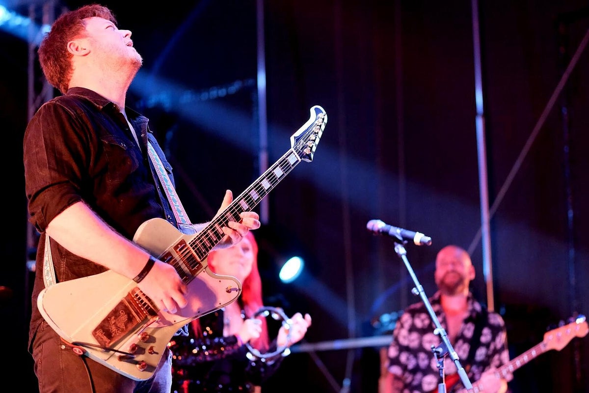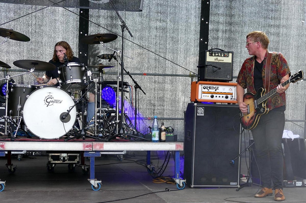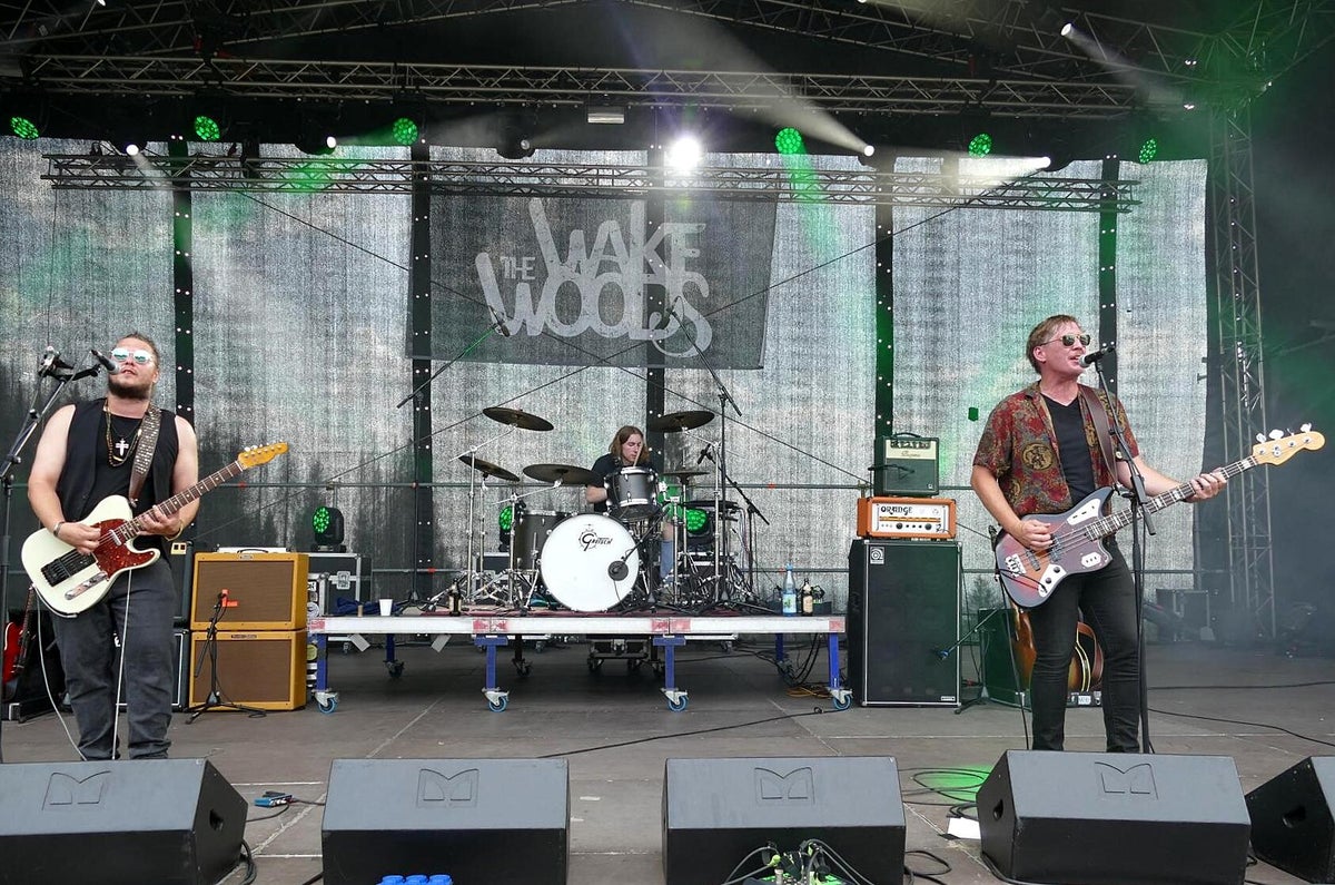 Freitag: Und am Anfang stand das Wort !! Auch in unserem Vorwort 2025 – Der Weckruf östlich aus dem Wald konnte lauter nicht sein und es kommt wieder reges Leben auf und vor die Bühne. Pünktlich eröffnet das Berliner Rock-Trio The Wake Woods den sonnigen Freitag. Geadelt mit TV-Aufnahmen beim WDR-Rockpalast, erfolgreiche Vorband von The Who, massig Vorschuss-Lorbeeren !!