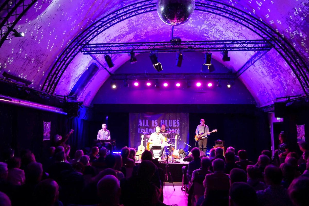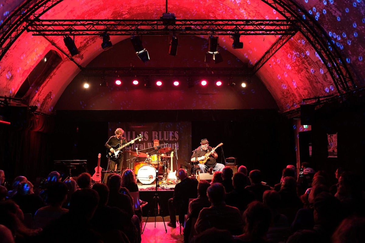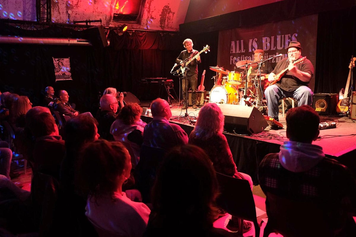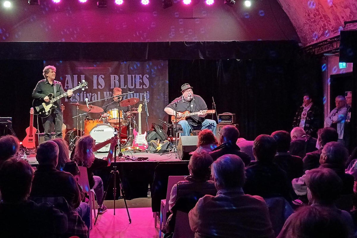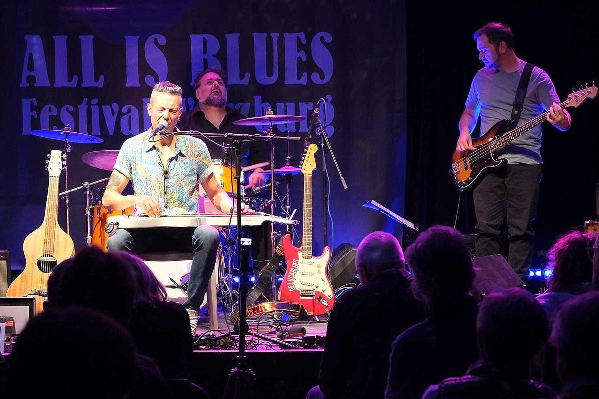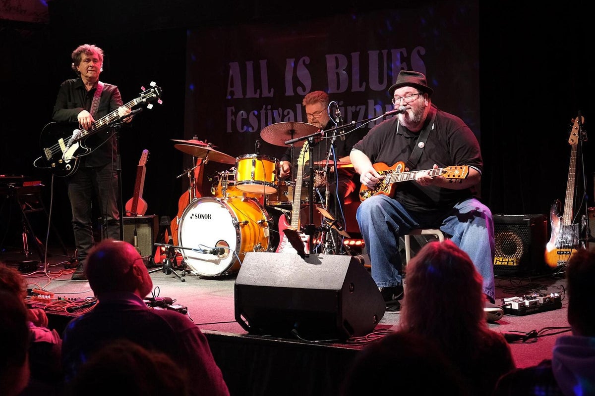 Das verriet uns Chansonnette und Mitveranstalterin Carola Thieme bei unserer Ankunft. Gleich vorweg: es war wieder bluesig-magisch an zwei Tagen Mitte November im Würzburger Musik-Club Z87. Zwar war Carola etwas nervös wegen des Ticketverkaufs, musste sie aber nicht, denn beide Tage waren sehr gut vom Fach-Publikum besucht. Das verwundert auch nicht bei diesem sehr guten und vielfältigem 2-tägigen Programm. Wir werden nachfolgend alle Musiker kurz vorstellen und über deren Auftritte berichten. Das diesjährige Festival war wieder, dem Festival-Thema folgend, breit aufgestellt und natürlich, wie schon 2024 angekündigt, hochkarätig. Bilder oben L_R: 1. Promo All Is Blues Festival, 2. Carola Thieme im Foyer, 3. Jochen Volpert.