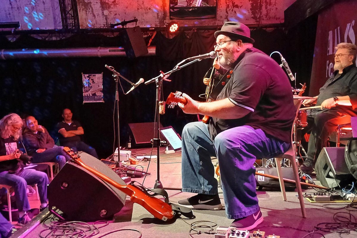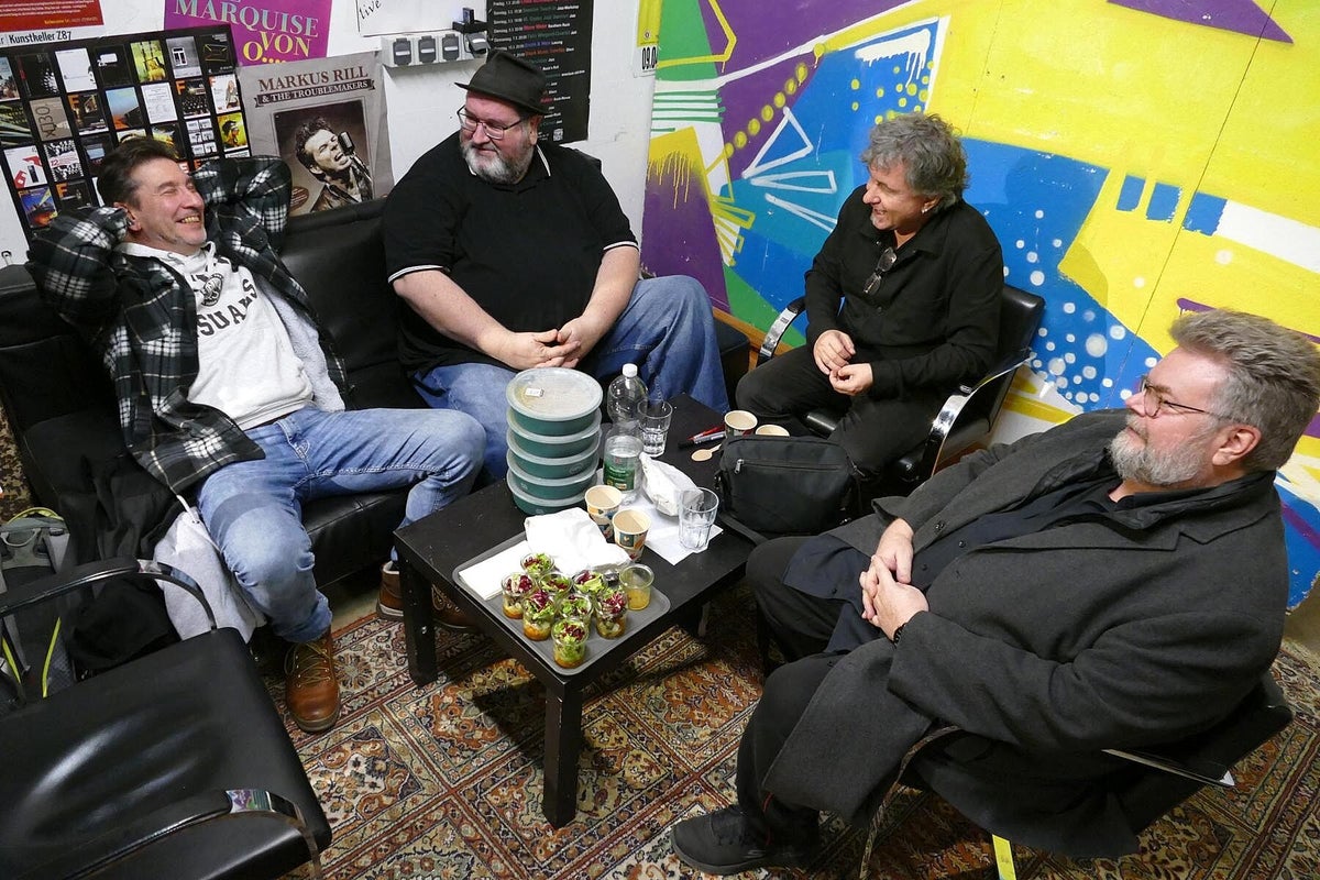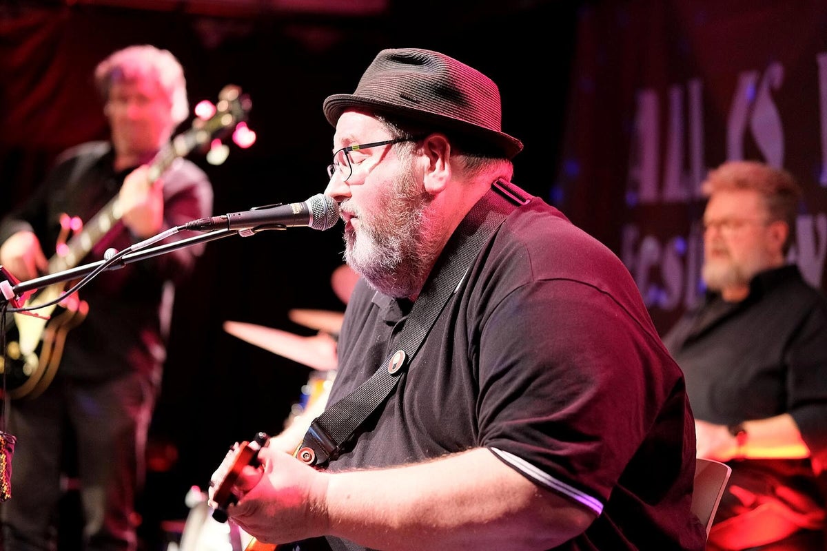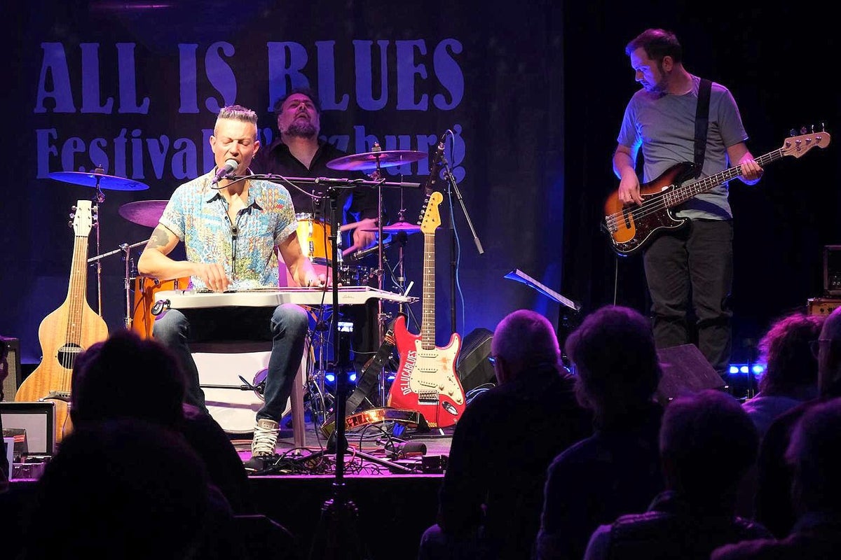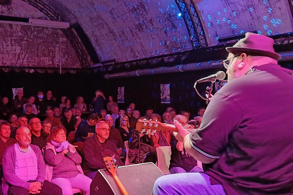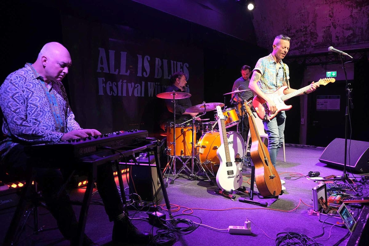 Das verriet uns Chansonnette und Mitveranstalterin Carola Thieme bei unserer Ankunft. Gleich vorweg: es war wieder bluesig-magisch an zwei Tagen Mitte November im Würzburger Musik-Club Z87. Zwar war Carola etwas nervös wegen des Ticketverkaufs, musste sie aber nicht, denn beide Tage waren sehr gut vom Fach-Publikum besucht. Das verwundert auch nicht bei diesem sehr guten und vielfältigem 2-tägigen Programm. Wir werden nachfolgend alle Musiker kurz vorstellen und über deren Auftritte berichten. Das diesjährige Festival war wieder, dem Festival-Thema folgend, breit aufgestellt und natürlich, wie schon 2024 angekündigt, hochkarätig. Bilder oben L_R: 1. Promo All Is Blues Festival, 2. Carola Thieme im Foyer, 3. Jochen Volpert.