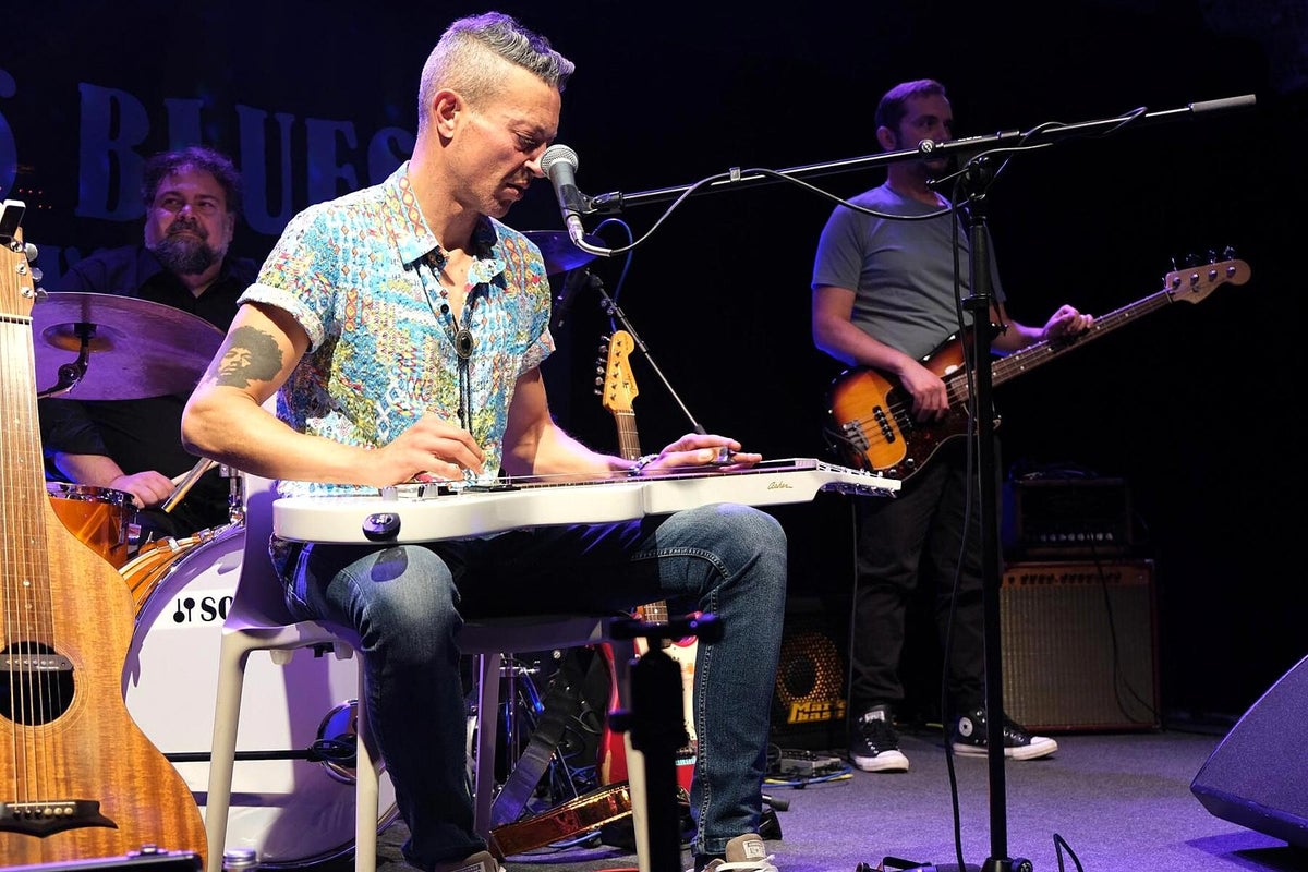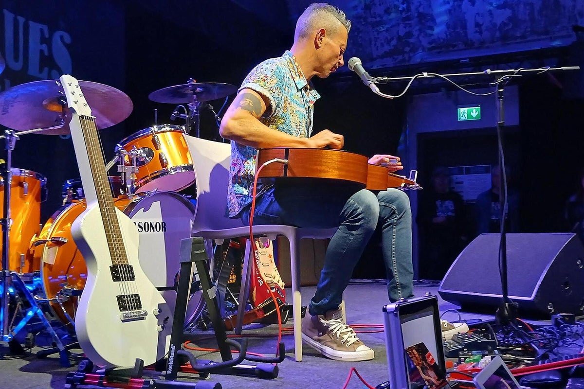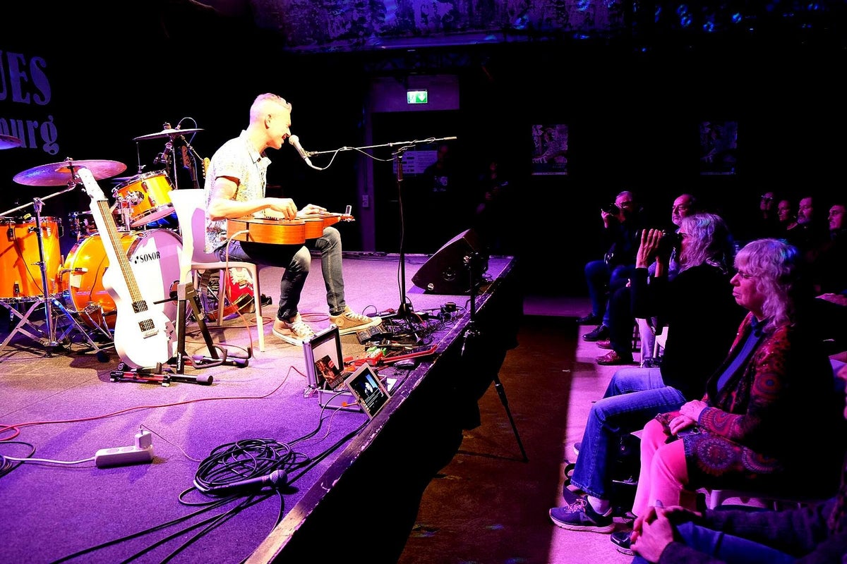 Versione Italiana – Quanto sia vivace, innovativa e di qualità la scena blues italiana; attualmente con Stefano Ronchi, The Goosebumps Brothers, Stefano Barigazzi & Band, lo abbiamo già sperimentato decine di volte dal vivo. Il quartetto italiano guidato dal romano Andrea De Luca ha intrapreso un'odissea per esibirsi al Club Z87 di Würzburg. Hanno portato con sé l'album di 75 minuti Live In Studio Sessions (2023). Michael, proveniente dalla zona della Foresta di Teutoburgo, e i romani: c'è stato un incontro storico in passato? Questa volta è stato pacifico, diremmo addirittura molto cordiale, cosa che non è difficile da ottenere con MVM. Durante il viaggio da Roma, la loro città natale, hanno raccolto a Milano il tastierista Alessio dalla Sardegna e poi sono arrivati in quattro a Würzburg. Suonano qui per i fan del blues della Franconia, dormono qualche ora e, dopo una spartana colazione italiana, intraprendono immediatamente il viaggio di ritorno a Roma passando per Milano. In molti testi leggiamo con quali altri eroi internazionali del blues il maestro della chitarra hawaiana Andrea ha già suonato. Ma solo un impegno del genere per gli appassionati di blues tedeschi lo rende per noi un eroe, come Michael ha cantato in Heroes, “un eroe solo per un giorno”. Speriamo di no, perché con la sua esibizione Andrea ha lasciato il suo biglietto da visita per ulteriori visite nei paesi di lingua tedesca. Sul palco una moltitudine di chitarre diverse, che Andrea ha suonato con maestria nel corso del concerto. Con le sue chitarre lap steel e il suo canto molto accentuato ha suscitato grande entusiasmo e molti applausi. Anche i piccoli aneddoti della sua vita, che raccontava ogni volta che cambiava chitarra, ci hanno commosso. Un musicista ci offre uno sguardo sulla sua vita, che è come il blues di MVM, che ci unisce tutti. Non solo oggi, ma anche 100 anni fa. Già nella gabbietta è stato immerso nella musica e questo ha fatto sì che questa fiamma non si sia spenta fino ad oggi. Andrea sale sul palco da sola e suona prima due canzoni acustiche ridotte. Poi si aggiungono i tre italiani Bello al basso (Menotti Minervini), alla tastiera (Alessio Sanna) e alla batteria (Andrea Pupi Merli). Ha inizio una performance molto bella, con piccole sorprese agli strumenti, dove la lap steel e lo slide dominano la scena. Anche Andrea interpreta Shadows In The Rain, un grande classico dei “poliziotti inglesi”. E il pubblico apprezza l'enorme impegno di questi quattro simpatici uomini della Bella Italia. Gli applausi frenetici non accennano a diminuire, Andrea deve quindi tornare sul palco. Prende una sedia e una delle sue chitarre hawaiane, si siede davanti al palco e suona un ultimo bis senza amplificazione, circondato dai fan. Ovviamente, dopo lo spettacolo c'è ancora molto da fare al merchandising di Andrea De Luca. Nel foyer chiacchieriamo anche con Axel Küstner, che con una mostra di tre dozzine di fotografie in bianco e nero sul blues, dal titolo Gon’ Play It For Lil’ Brother, ha aggiunto un altro momento clou alla manifestazione. Testo_Immagini: Christa & Rolando Koch