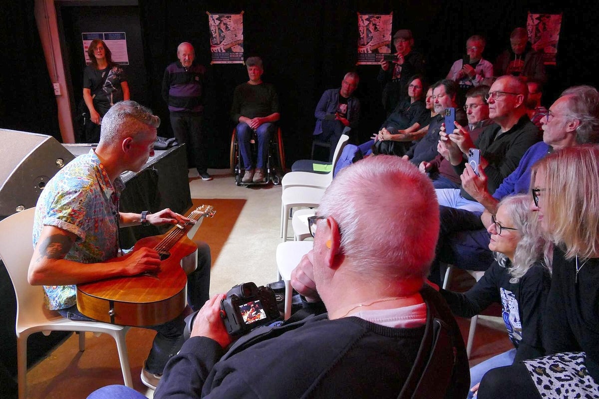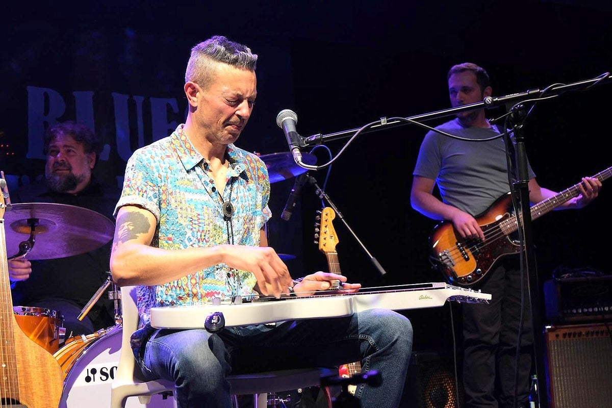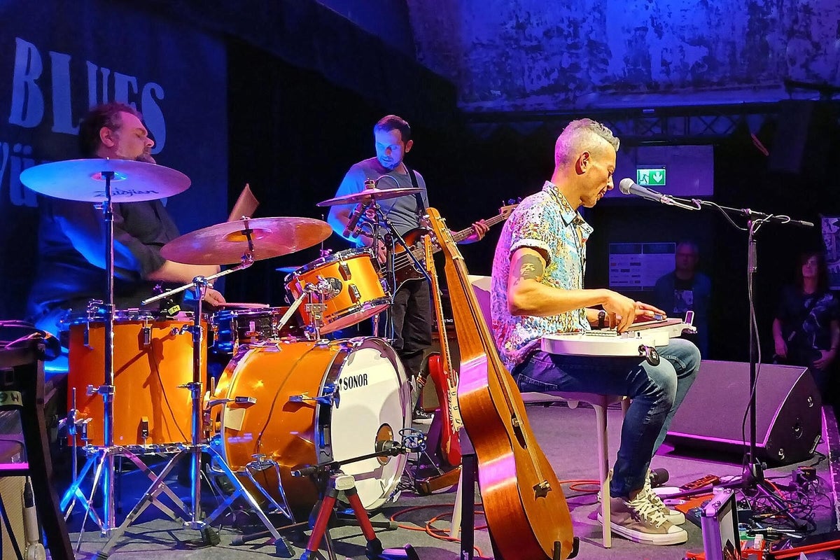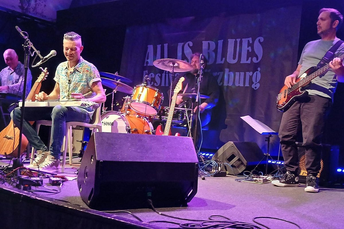 Wie lebendig, innovativ und gut die italienische Blues-Szene ist; aktuell mit Stefano Ronchi, The Goosebumps Brothers, Stefano Barigazzi & Band, haben wir schon dutzendfach Live erlebt. Das italienische Quartett um Römer Andrea De Luca war auf einer Odyssee, um ihren Auftritt im Club Z87 in Würzburg zu bestreiten. Sie brachten das 75-minütige Album Live In Studio Sessions (2023) mit. Michael aus nähe Teutoburger Wald und Römer, da gab es in der Vergangenheit doch schon mal ein historisches Zusammentreffen ?? Diesmal war es friedlich, wir sagen, es war sogar sehr herzlich, was bei MVM nicht schwerfällt. Aus ihrer Heimat Rom haben sie unterwegs in Mailand den Keyboarder Alessio aus Sardinen aufgelesen und sind dann zu viert nach Würzburg angereist. Sie spielen hier für die fränkischen Blues-Fans auf, schlafen ein paar Stunden und treten nach spartanischen italienischen Frühstück sofort die Rückreise über Mailand nach Rom an. Wir lesen in vielen Texten, mit welchen anderen internationalen Blues-Helden Maestro der Hawaii-Gitarre Andrea bereits zusammengespielt hat. Aber allein so einen Einsatz für die deutschen Blues-Fans machen ihn für uns zu einem Helden, wie Michael ja vorher bei Heroes gesungen hat, „ein Held nur für einen Tag“. Hoffentlich nicht, denn Andrea hat mit seinem Auftritt seine Visitenkarte für weitere Besuche im deutschsprachigen Raum abgegeben. Auf der Bühne eine Vielzahl von verschiedenen Gitarren, die Andrea im Laufe des Konzerts virtuos einsetzte. Besonders mit seinen Lap-Steel-Gitarren und seinem sehr betonten Gesang sorgte er für Aufregung und viel Szenen-Applaus. Auch seine kleinen Geschichten aus seinem Leben, die erzählte er immer wieder beim Wechsel der Gitarren, haben uns berührt. Ein Musiker gibt Einblick in sein Leben, das ist wie bei MVM der Blues, der uns alle verbindet. Nicht nur heute, sondern auch schon vor 100 Jahren. Schon im Laufstall wurde er mit Musik berieselt und das hat dafür gesorgt, dass diese Flamme bis heute nicht verloschen ist. Andrea kommt erst einmal allein auf die Bühne, spielt zuerst zwei reduzierte akustische Lieder. Danach kommen die drei singenden, italienischen Bellos an Bass (Menotti Minervini), Tasten (Alessio Sanna) und Trommeln (Andrea Pupi Merli) dazu. Eine sehr schöne Darbietung nimmt seinen Lauf, immer wieder kleine Überraschungen an den Instrumenten, das Spiel an Lap-Steel und Slide dominiert das Geschehen. Auch Andrea interpretiert mit Shadows In The Rain einen starken Klassiker von den „englischen Polizisten“. Und das Publikum honoriert den enormen Einsatz dieser vier sympathischen Männer aus Bella Italia. Der frenetische Applaus wollte einfach nicht abebben, da musste Andrea doch noch einmal ran. Er schnappte sich einen Stuhl und eine seiner Hawaii-Gitarren, setzte sich vor die Bühne und spielte unverstärkt und von den Fans umringt noch eine letzte Zugabe. Klar, das beim Merch von Andrea De Luca danach noch einiges los war. Wir quatschen draußen im Foyer auch mit Axel Küstner, der hier mit einer Ausstellung von drei Dutzend S/W-Bluesfotografien, Motto: Gon’ Play It For Lil’ Brother, noch einen weiteren Glanzpunkt setzte. Text_Bilder: Christa & Roland Koch