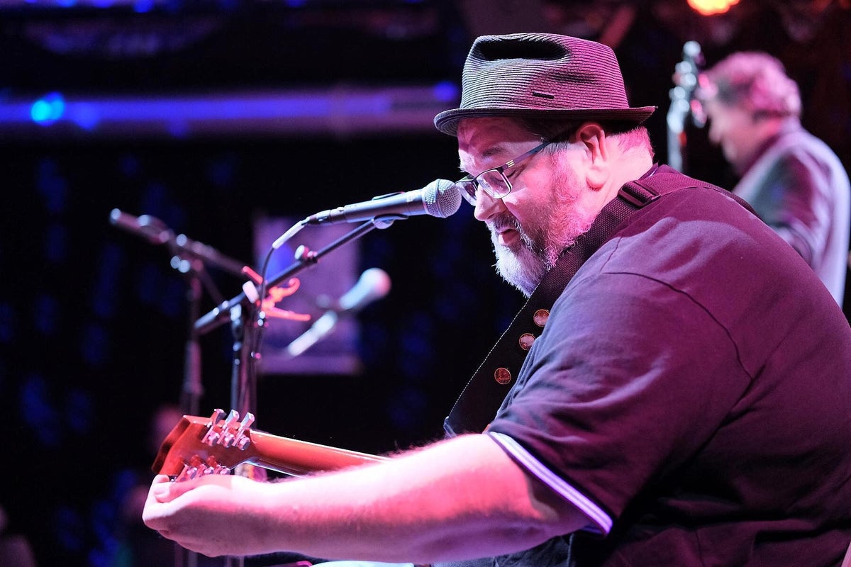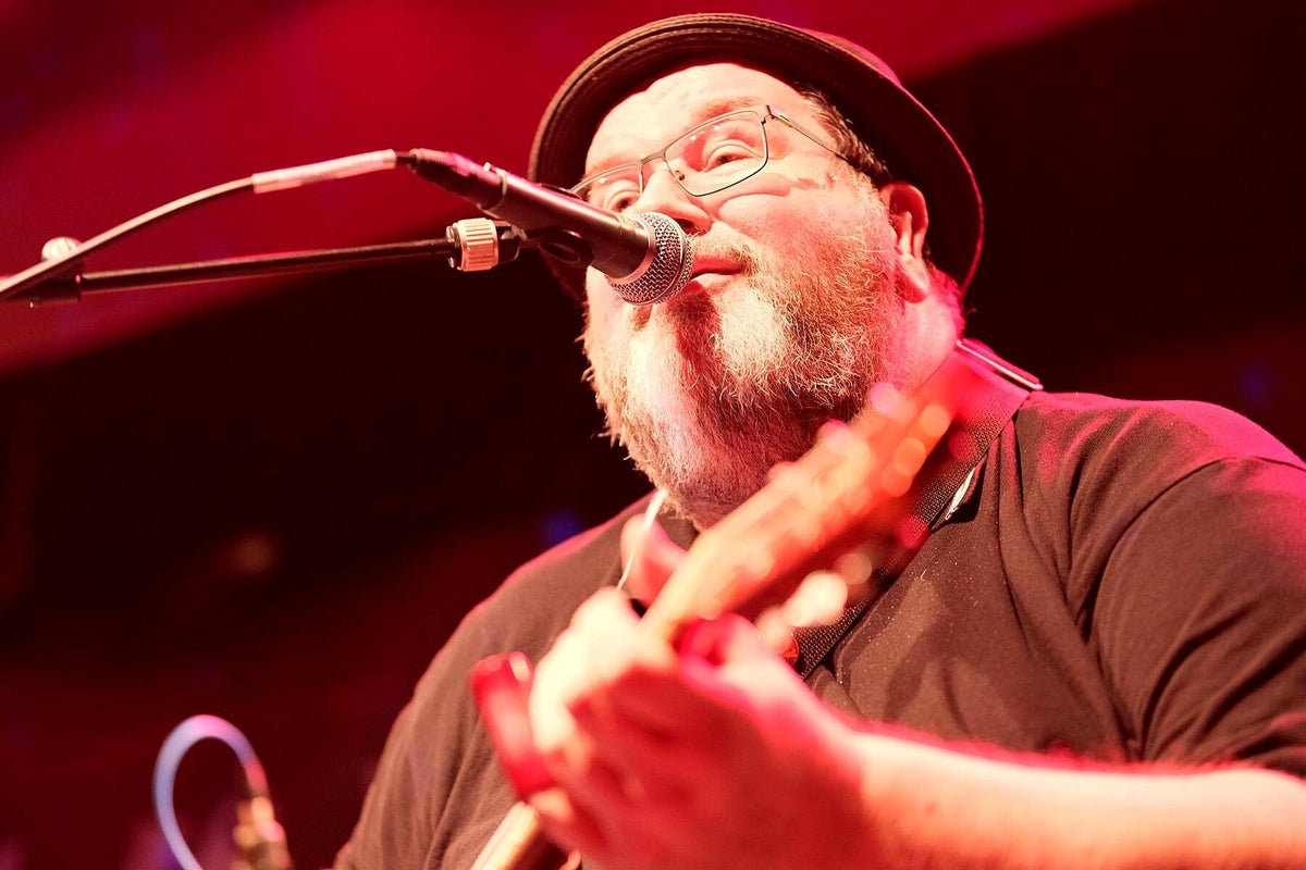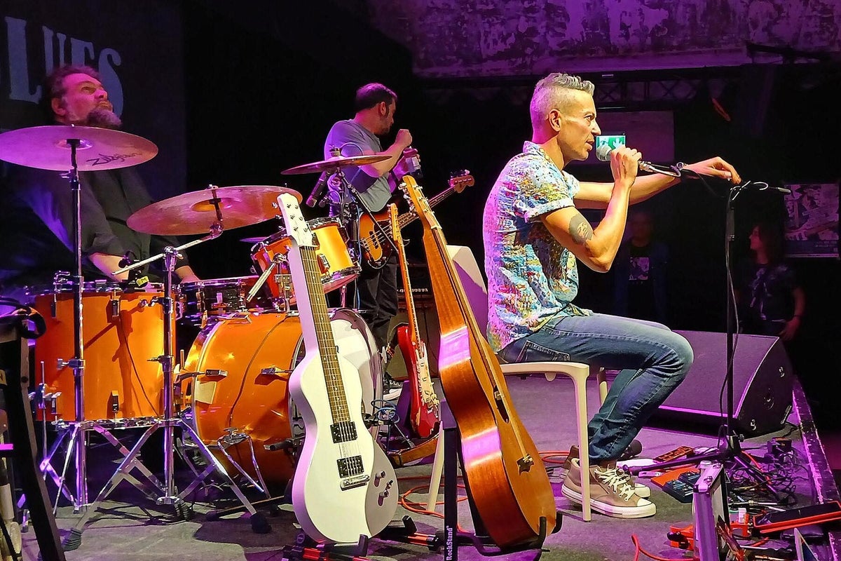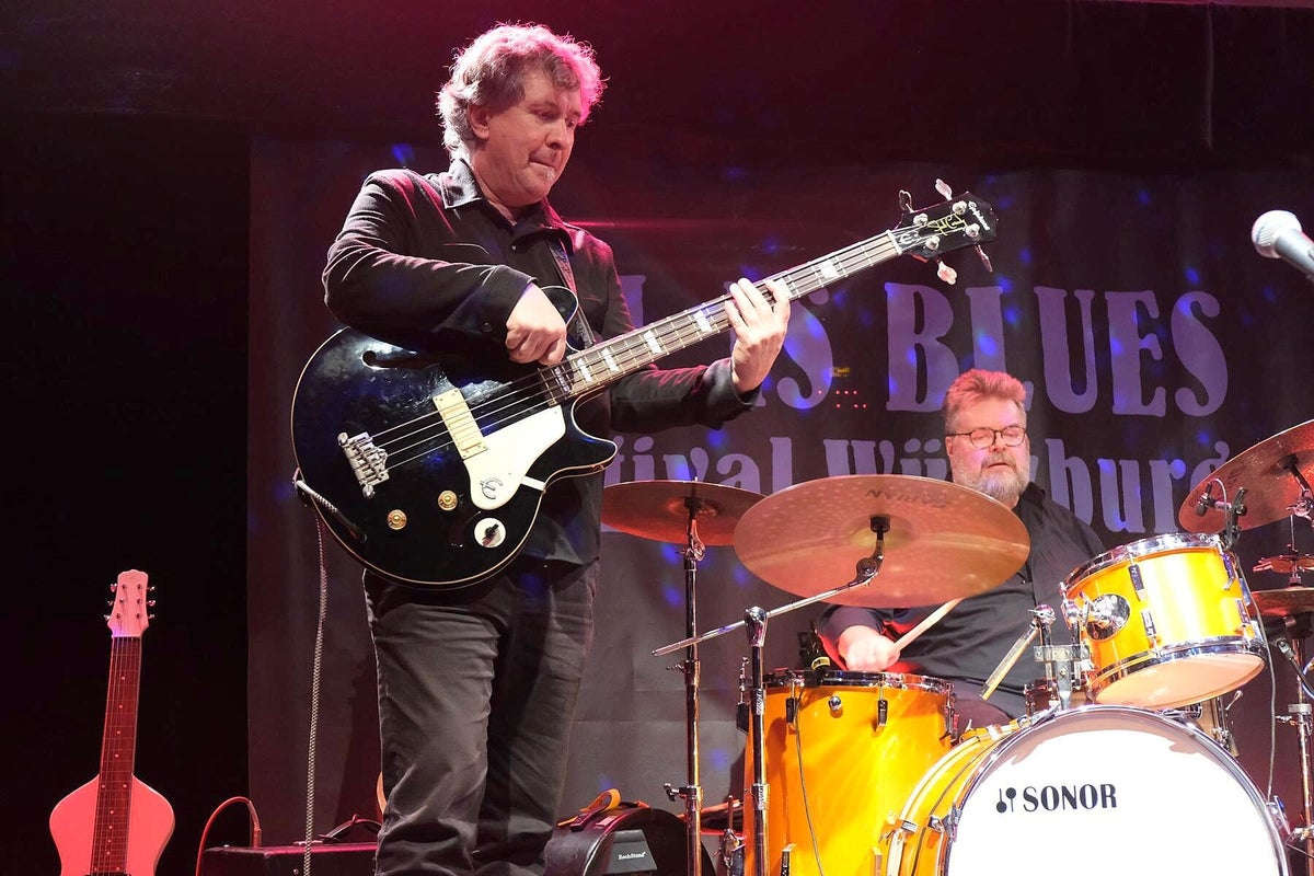 Wir trafen ein paar Tage vorher den sehr entspannten Blues-Barden Michael van Merwyk bereits in der Feldsteinkirche Dolgelin im Oderbruch Nähe polnischer Grenze. Dort spielte er als Gast im Rahmen einer 4-stündigen Blues-Revue (wir berichteten darüber) einige Titel von der aktuellen Produktion Blues Everywhere I Go. Und auch diesmal ist der sympathische Musiker aus dem westfälischen Rheda-Wiedenbrück sehr gesprächig und nahbar. Michael van Merwyk selbst: „Meine Schule waren Kneipen, Clubs und Partys. Ich singe Songs und erzähle Geschichten. Meistens spiele ich eigene Kompositionen, aber auch die von anderen Musikern in ganz eigenen Versionen. Ein guter Song ist ein guter Song.“ Und genau das hatte er uns noch einmal in seiner sehr sympathischen Art mit vielen anderen Anekdoten erzählt und später auf der Bühne wieder mit Leben gefüllt. „Kennt ihr den Unterschied zwischen Blues und Blues-Musik ?? Blues ist Gejammer über alltägliche traurige Ereignisse, beispielsweise Frau hat mich verlassen, bin arbeitslos oder die Wohnung ist weg. Aber nach einem Konzert mit Blues-Musik dagegen, fühlt man sich besser als vorher.“ Gelebte Erfahrungen eines weitgereisten Blues-Musikers die wir bestätigen können. Michael bringt seine sehr erfahrenen The Ollies, Bassist Oliver Geselbracht alias Ollie Gee (Blues Company) und Schlagzeuger Oliver „Ollie“ Spanuth (Dave Goodman), mit in die Franken-Metropole am Main. Interessant ist bei den Ollies, dass sie beide auch schon mit Big Daddy Wilson, der sein Programm am nächsten Tag zum Abschluss präsentiert, zusammen musiziert haben. Das Trio ist traumhaft eingespielt, das spürt jeder sofort. Sie spielen ein Bündel Lieder von Michaels letzten vier Alben, aber auch mit beispielsweise Get It On (T. Rex), das berührende Heroes (David Bowie) was vom Publikum mitgesungen wurde und Breaking The Law (Judas Priest), Klassiker im ureigenen Gewand dieses erfahrenen Trios. Besonders die leisen Töne sind eine starke Seite dieser Musiker. Michael füllt mit seiner ausdruckstarken Stimme problemlos den gesamten Raum bis in die hintersten Reihen. Mehrmaliger begeisterter Zwischenapplaus unterstrich das deutlich !! Wenn ihr einmal eine Gelegenheit habt, in einem heimatlichen Club, MVM Solo oder mit Ollies-Begleitung erleben zu können, geht hin und staunt über „The Bear“ Michael van Merwyk aus Westfalen. Wir wollten Michael noch einmal am nächsten Morgen im Wohnzimmer des All Is Blues Festival im Band-Hotel Lamm in Höchberg treffen, hat aber leider nicht geklappt, Michael war schon auf dem Weg zum nächsten Fantreffen Richtung Stuttgart. Dafür tauschten wir uns mit Lamm-Chef Werner Lawrenz, selbst Gitarrist, über die jetzige schwierige Situation in der Kultur aus. Sehr interessante Themen, sehr informativer Austausch. Text_Bilder: Christa & Roland Koch