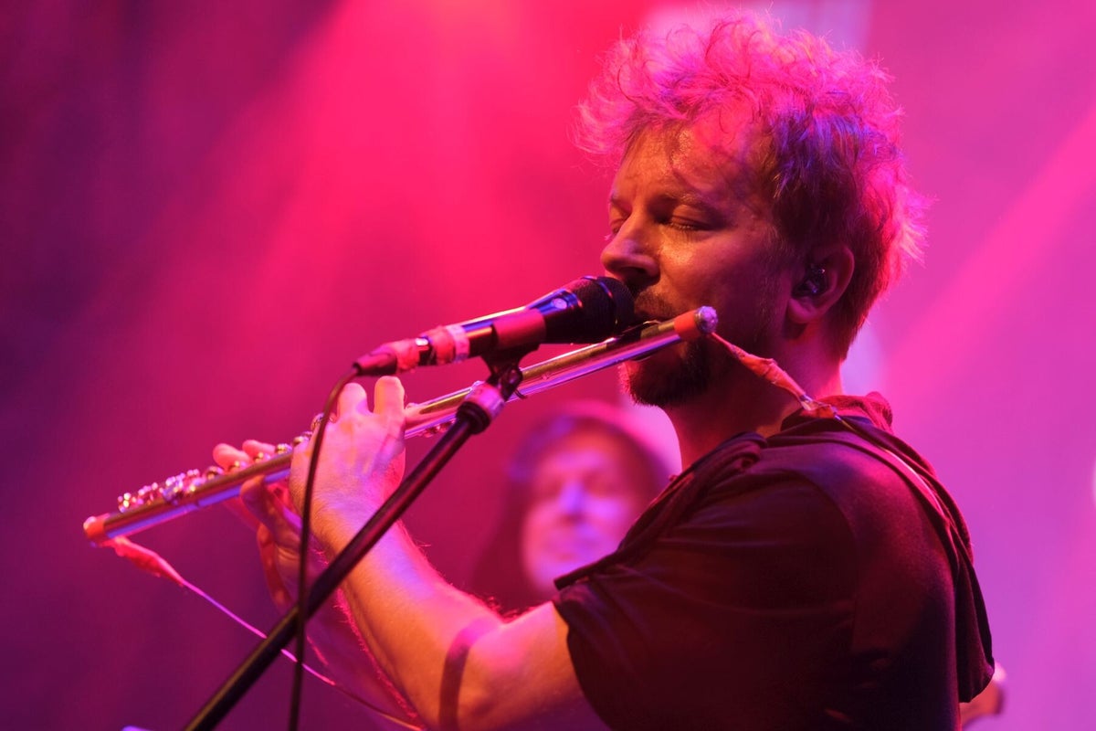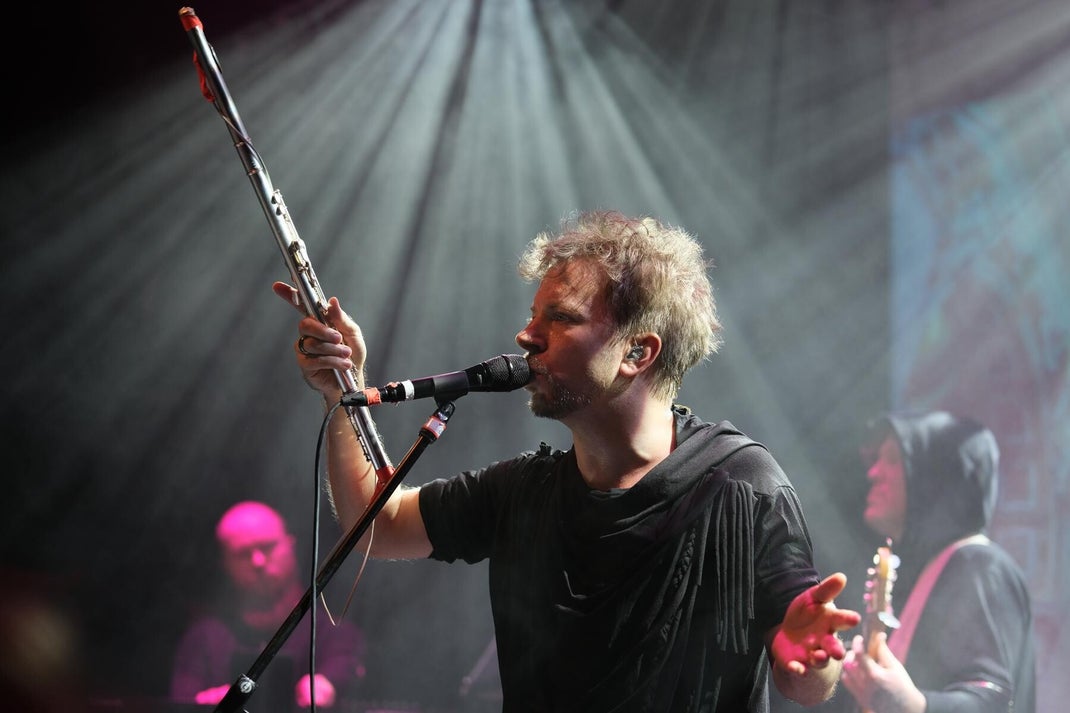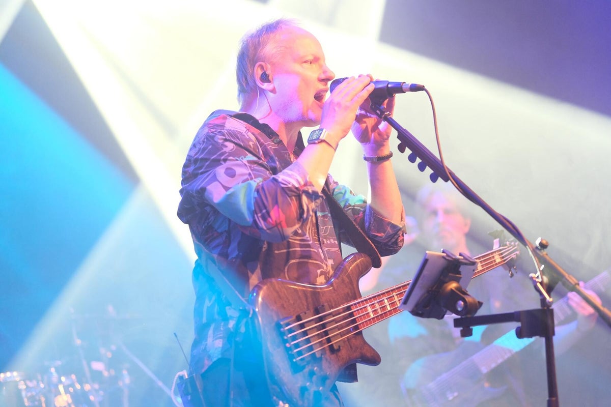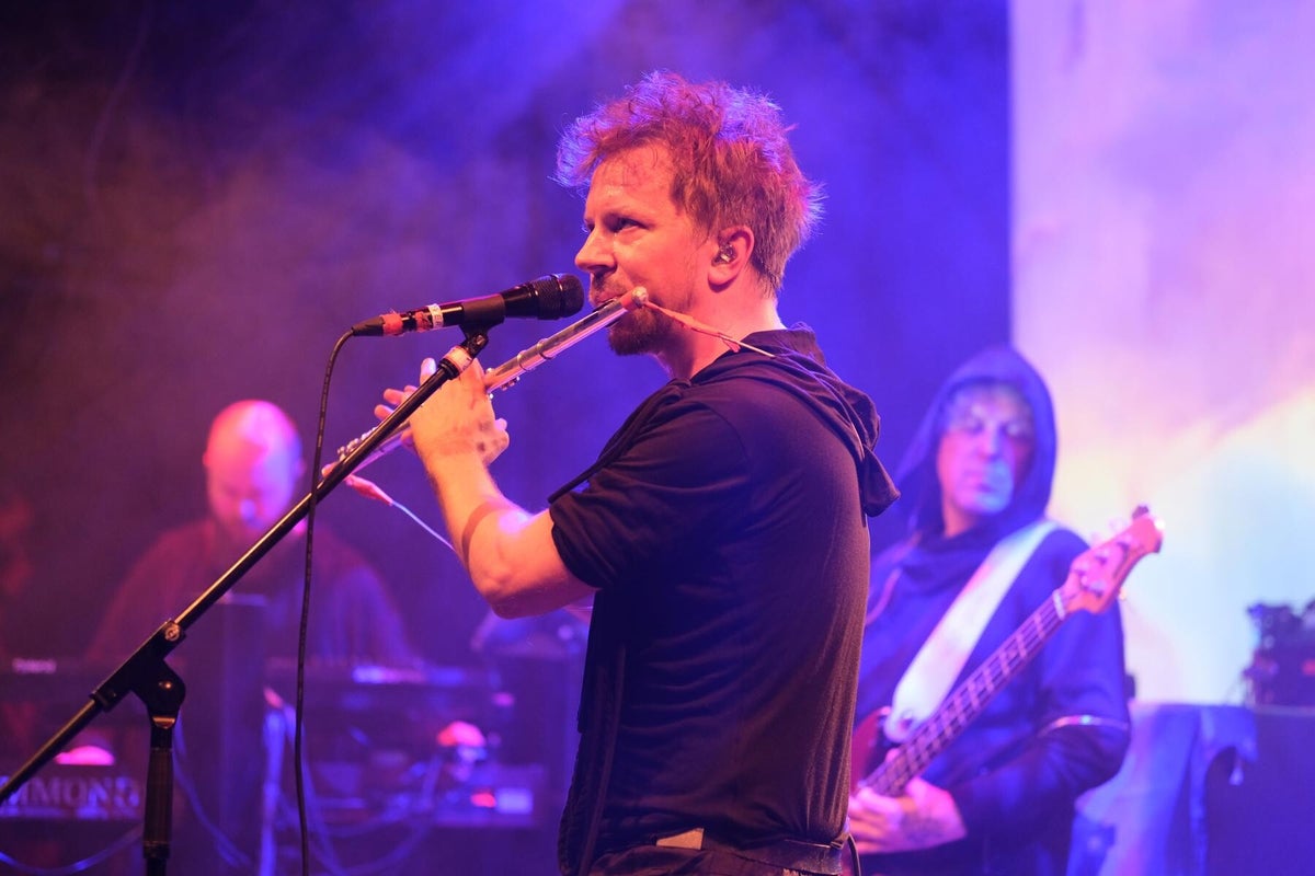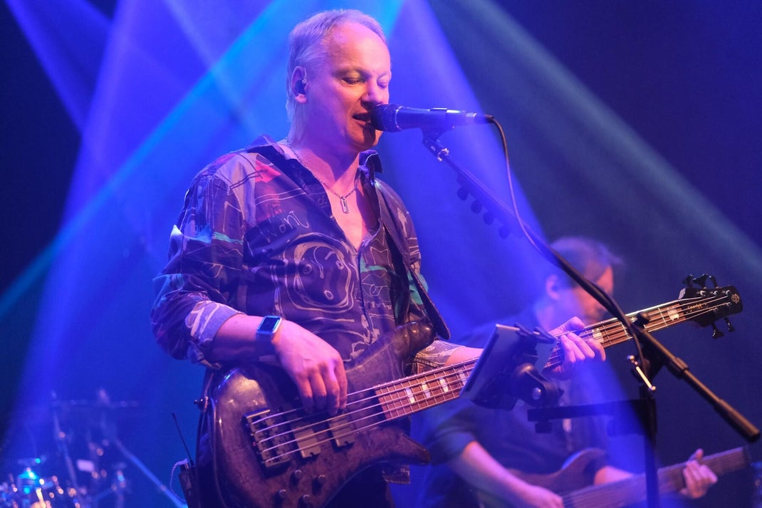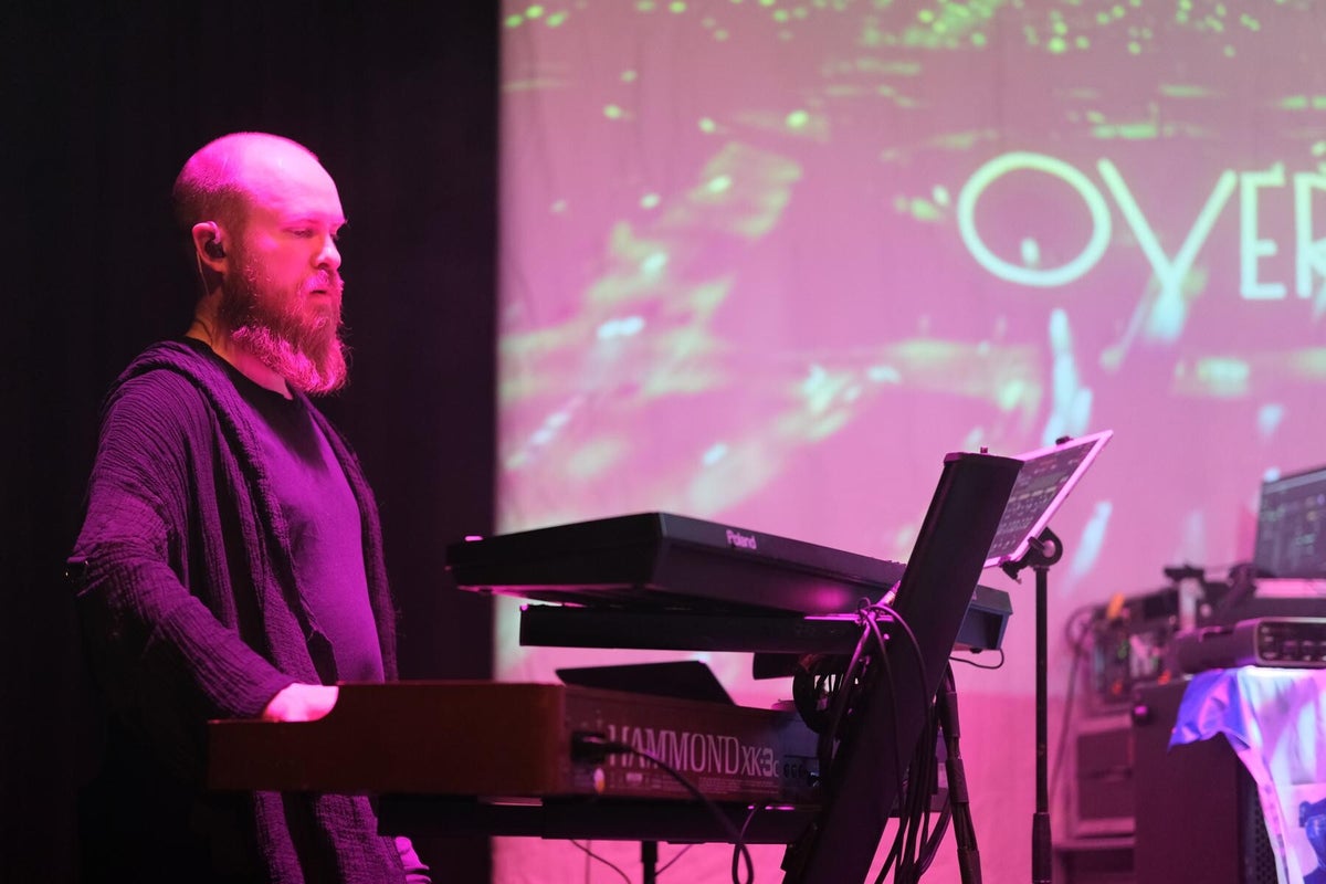 Kurze Umbaupause für die B-Seite mit Overhead aus Helsinki, die mal schnell für ein halbes Dutzend Auftritte in Deutschland, Niederlande und Belgien nach Mitteleuropa gekommen sind. Wie sehr sich beide Bands schätzen, zeigt das die Finnen schnell noch nach dem Sound-Check das Crystal-Palace-Logo in ihre Animation eingebaut hatten und damit das Quartett aus Berlin entzückten, Respekt. Overhead hat inzwischen in jeder Hinsicht große Eigenständigkeit entwickelt. Nach sieben Alben, vier Label-Wechsel, kurzes Gastspiel auch bei Progressive Promotion Records, hat die Fünfer-Bande seine letzten beiden Alben Haydenspark (2018) und Doppeldecker Telepathic Minds (2023) komplett in Eigenregie abgewickelt, inklusive die Promotion und Buchung. Sie behalten jetzt alle Fäden fest und selbstbewusst in den eigenen Händen. Genauso stand auch dieses Quintett auf der Rüsselsheimer Bühne mit modernster Licht-Ton-Technik und so gaben sie sich auch später an ihrem Merch-Stand. Auch beim Auftritt von Overhead, zufällig spielten auch sie acht Titel, standen die langen Kompositionen im Mittelpunkt. Dabei spielten sie ihre Trümpfe voll aus, konnten Alex Keskitalo (Gesang, Flöte), Jaakko Kettunen (Gitarren), Janne Pylkkönen (Bass), Tarmo Simonen (Keyboards), Ville Sjöblom (Schlagzeug) ihr Handwerk solistisch und als Kollektiv gut präsentieren. Wie zu erwarten stand das aktuelle Album mit War To End All Wars, Ghosts From The Future, Tuesday That Never Came, Telepathic Minds im Zentrum, damit schon fast 45 Minuten moderne, anspruchsvolle Rockmusik. Das Publikum war nimmermüde die Präsentation immer wieder mit Szenen-Applaus zu honorieren. Ich sah sogar mehrere Gäste die Texte mitsingen. Auch die Finnen brechen nicht mit alten Traditionen, die Zugabe ist wieder eine lange und eruptive Version des King Crimson Klassiker 21st Century Schizoid Man. Das Publikum ist begeistert und besonders Alex Keskitalo läuft zu absoluter Höchstform auf. Eine wunderbare Veranstaltung, professionell von Florian Haupt und sein Team in Szene gesetzt, die lautstark nach Wiederholung schreit. Ich habe da einige Doppeldecker im Auge, die dieses Rock-Spektakel wiederholen könnten, auch wieder gemischt und vielleicht auch mal in Deutsch oder Französisch. Eine fantastische Veranstaltung in einem schönen Musik-Tempel, die allemal noch mehr Publikum verdient hätte.