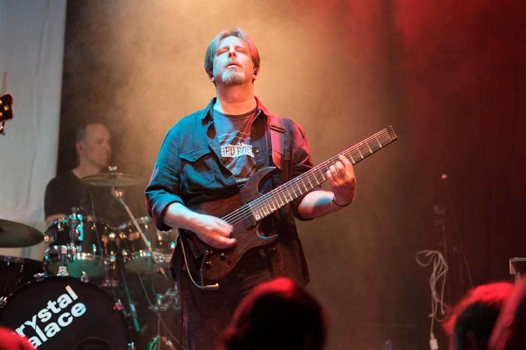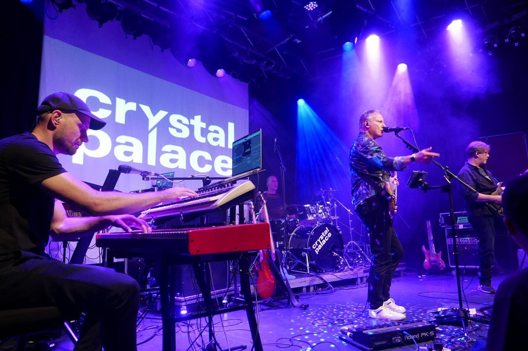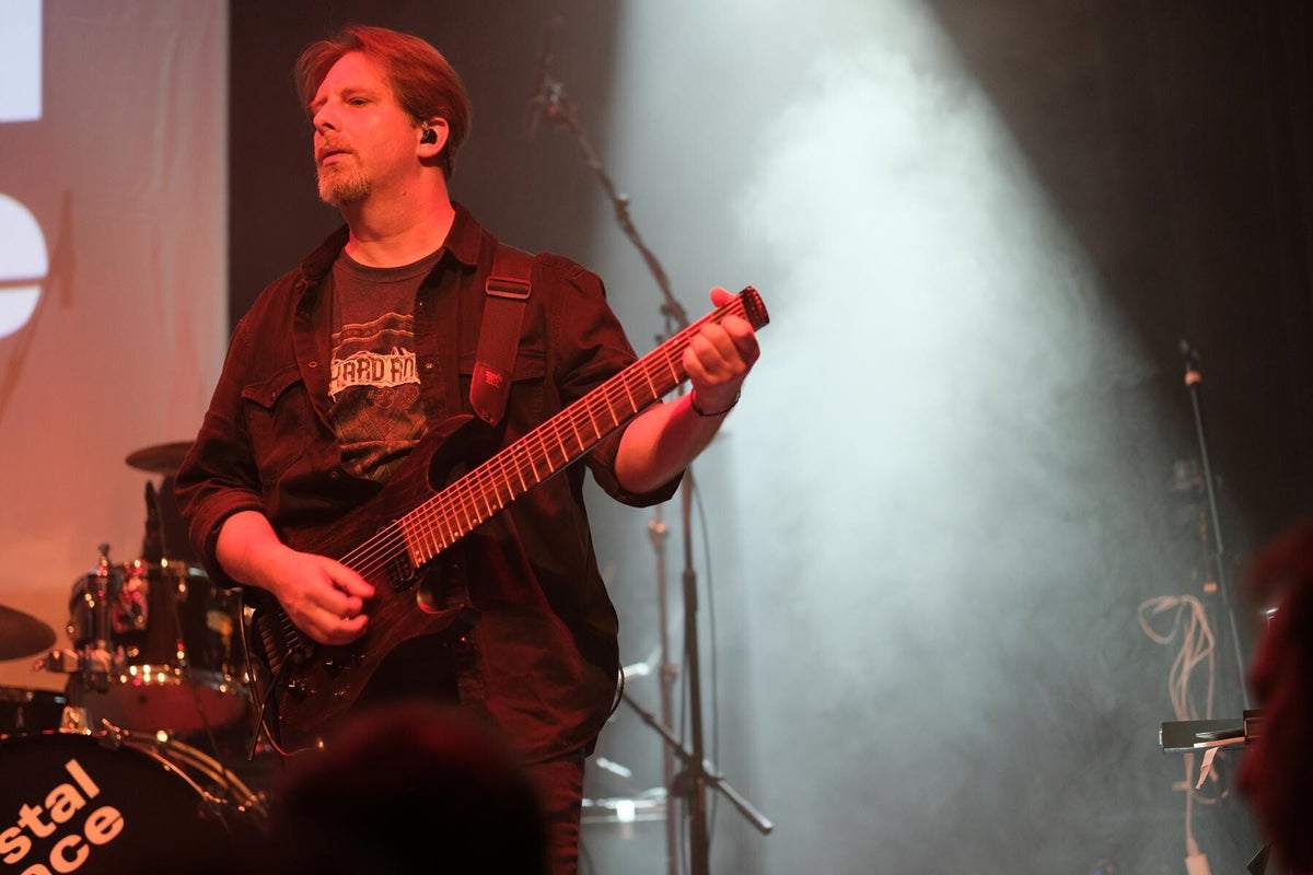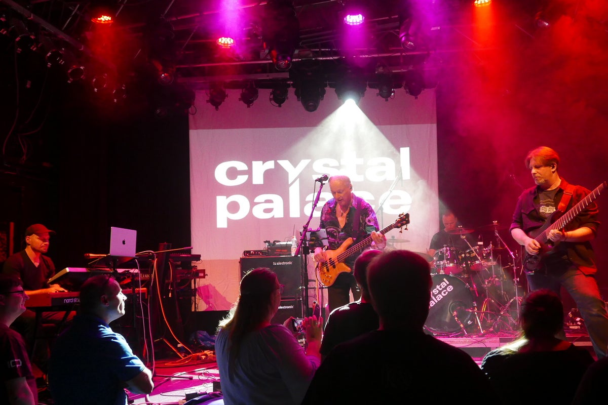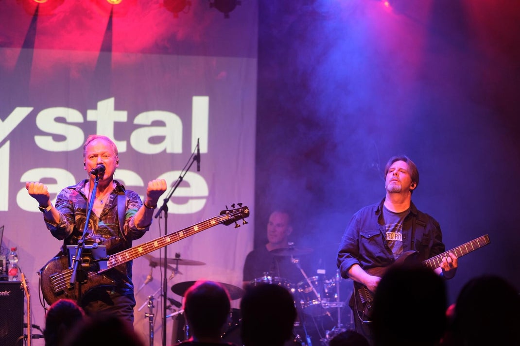Endlich wieder auf der Bühne !! Das Berliner Quartett Crystal Palace haben als Musikschaffende in den letzten drei Jahre fast alle Höhen und Tiefen durchlebt. Nach dem belastenden Erstarren der Kultur durch die Pandemie, haben sie kurz hintereinander ihr erstes Live-Album Scattered Over Europe (2021) als Audio-Video-Combo veröffentlicht, dann das sehr beachtete Konzept-Album Still There (2022). Sie waren in Europa eifrig unterwegs, spielten sogar jenseits des Atlantik, hatten etliche Buchungen, arbeiteten schon fleißig an dem neuen Material. Aber dieser positiv fließende Strom wurde jäh im Laufe von 2022 gebremst. Schicksalsschläge, Umorientierung, Lebenskrise bei den Musikern, der Verlust des Probenraums, irgendwie war der Wurm drin. Auswanderung aus Deutschland und neue Prioritäten hinsichtlich Beruf des Keyboarders machten einen Personalwechsel nötig. Da waren es nur erst mal noch drei und kurze Zeit später mit dem Weggang des Schlagzeugers leider nur noch ein 13-saitiges Gitarren-Duo. Ich erinnere mich an diese düstere Zeit ungern, an die Gespräche über: „wie soll es den weitergehen.“ Die Hoffnung haben 5-Saiter und Sänger Jens Uwe und 8-Saiter Nils nie aufgegeben. Und kaum waren 2023 einige Tage ins Land gegangen, tauchte unerwartet Mac Black aus der quirligen Berliner Szene auf, plötzlich hatten sie auch wieder einen Proberaum und zuletzt hat nun Olli Pahl als neuer Schlagzeuger sich das CP-Material drauf geschafft. Die Halle füllte sich, es waren viele Fans von Crystal Palace dabei, alle sind gespannt und wir freuen uns kollektiv zusammen mit der Band auf das erste Vollprogramm seit fast drei Jahren. Und es beginnt mit einem sehr druckvollen Sleepless, einer von drei langen Dingern aus The System Of Events (2013). Hier zeigt sich schon eine Änderung, drei Musiker in der vorderen Reihe ständig in Bewegung, der Schlagzeuger wegen des Platzbedarfs zwar dahinter, aber die vier interagieren konzentriert und intensiv über den gesamten Auftritt. Dann im selben Tempo und musikalischen Gewand die Klassiker Scattered Shards und Simply Irresistible Cruel Intentions von Scattered Shards (2018) sowie Orange Popsicle Sky und Planned Obsolescence von Still There. Und nach diesen fünf Titeln merkt man noch deutlicher was sich noch geändert hat; Zusammenhalt, Freude, Spiellaune, brillante Solos, eine lebendige Truppe auf der Bühne. Dazu die kleinen Geschichten von Yenz, von seiner zweiten Bass-Frau oder der Katze als Untermieter, das Publikum spürt die Lebensfreude und sie zeigen es durch Zwischenrufe, Kommentare und Applaus. Ich sitze im Dunkeln, freue mich, das ich bei dieser Neuauflage der sympathischen Berliner dabei sein durfte. Mit dem Titellied The System Of Events und Confess Your Crime (2016: Dawn Of Eternity) ist Crystal Palace 2024 bei sich selbst und vollends beim begeisterten Publikum angekommen. Zum Abschluss wie gewohnt und wie Yenz meint, dass man Traditionen beibehalten sollte, der zweiteilige 15-minüter Beautiful Nightmare. Acht lange Kompositionen aus der letzten 10-jährigen Karriere und fast 80 Minuten rockige Ohrwürmer von einer spielgelaunten Band. Yenz sagte mir später, er hätte endlos weiterspielen können, Mac und Olli dass sie die bisherige Zeit im Kristall-Palast bis heute genossen haben.