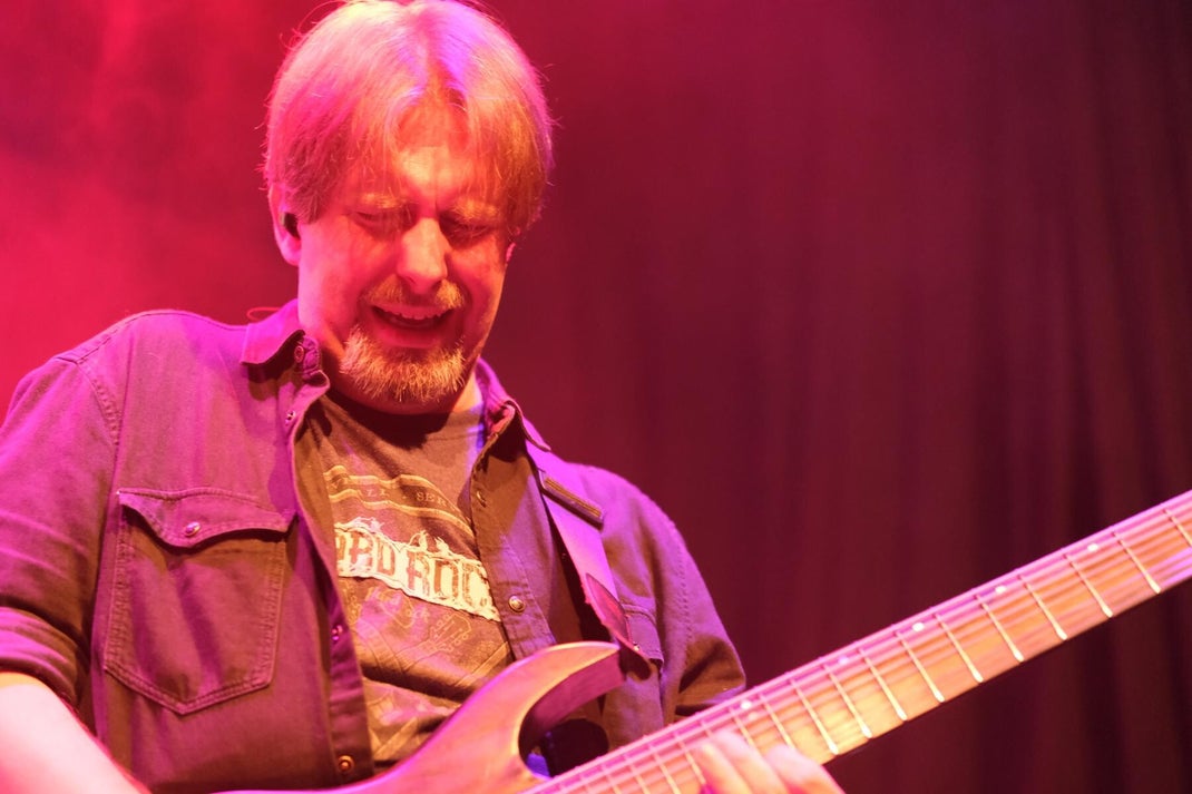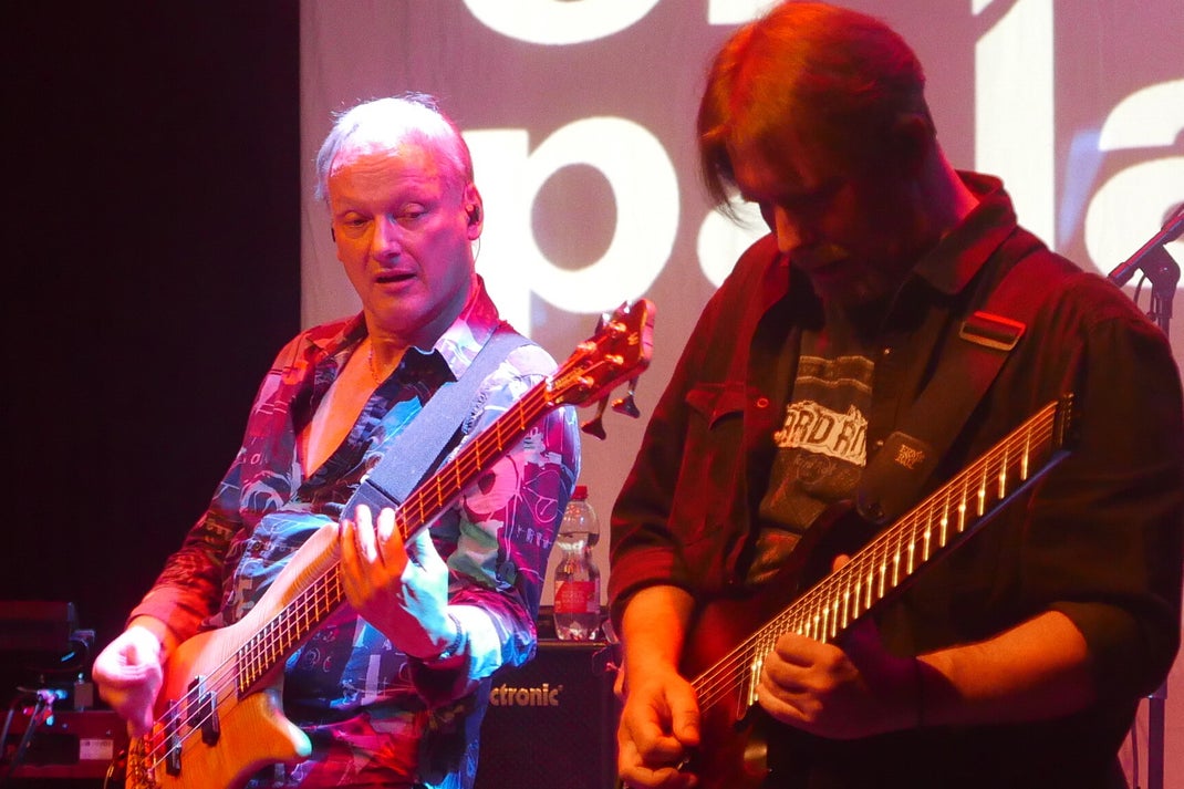 Aber den circa 100 Besuchern war es egal, denn es hatten sich zwei Rockbands der Extraklasse im Doppelpack angesagt. Beim meinem Eintreffen am renommierten Musik-Tempel, zusammen mit Olli Wenzler von Progressive Promotion Records, lief schon der druckvolle Sound-Check und die Hallenwände vibrierten. Bekannte Klänge, endlich mal wieder, denke ich so bei mir. Wir entern mit unserem Stand-Gedöns die spärlich beleuchtete Halle und werden sofort von einem druckvollen Klangbild begrüßt. Und wir strahlten uns gegenseitig an, auf der Bühne Gründungsmitglied Yenz Strutz, Langzeit-Gitarrist Nils Conrad sowie die beiden Neuzugänge Marcel Schwarz alias Mac Black (Tastengeräte) und der dynamische Trommler Olli Pahl.