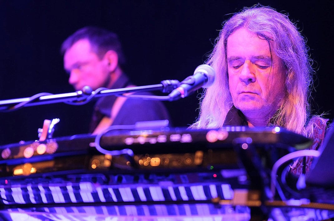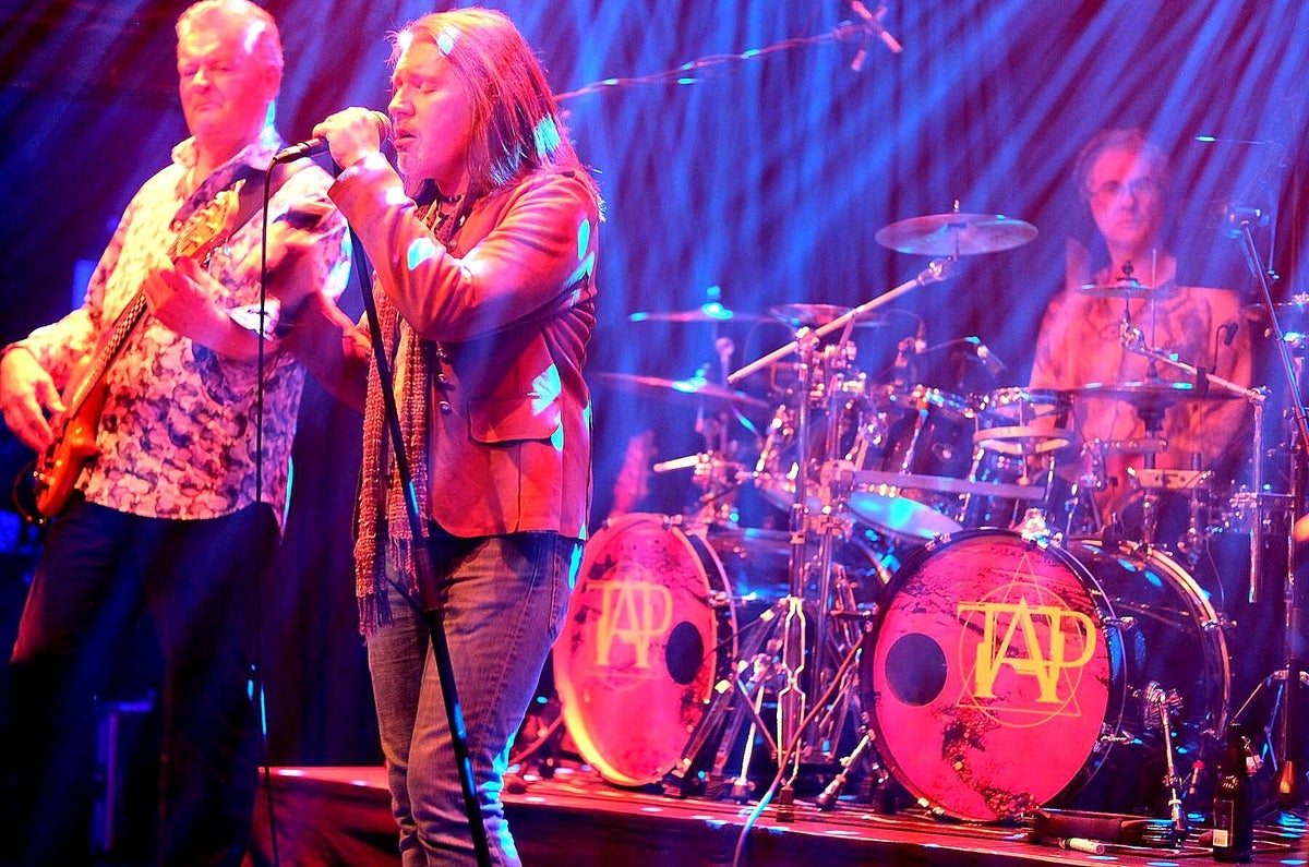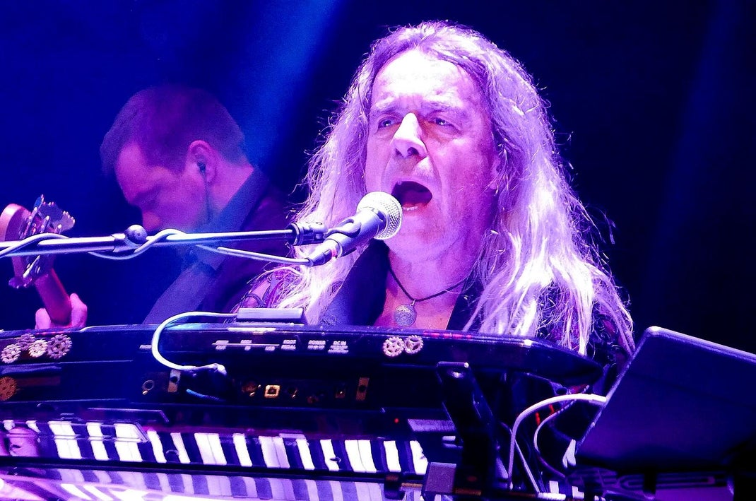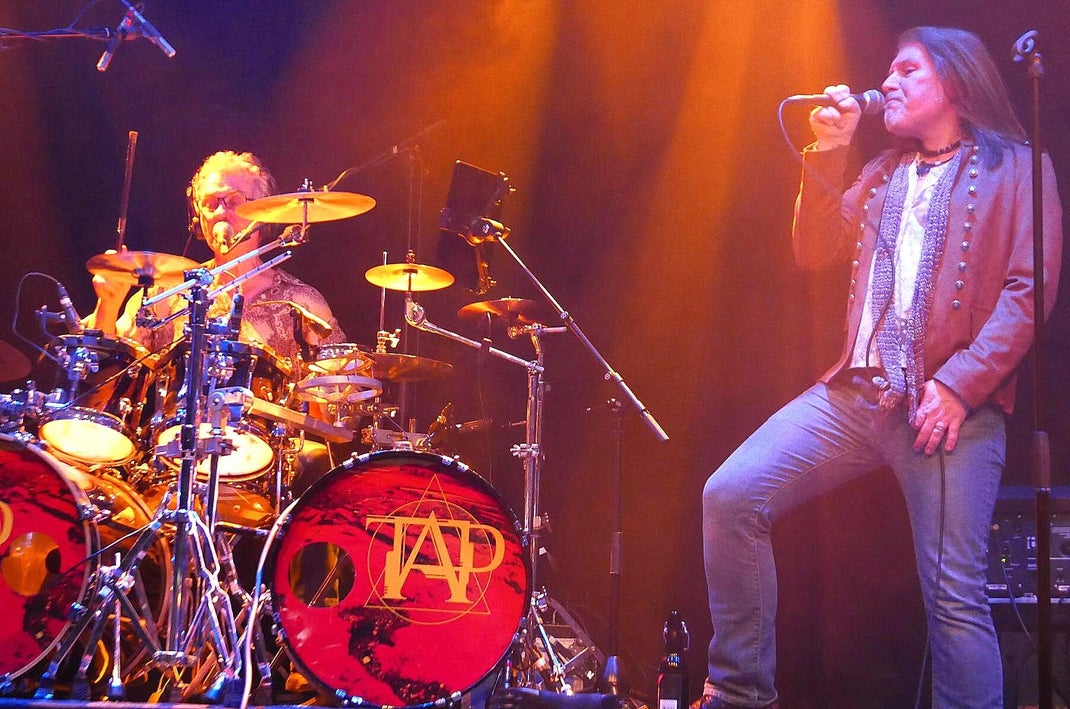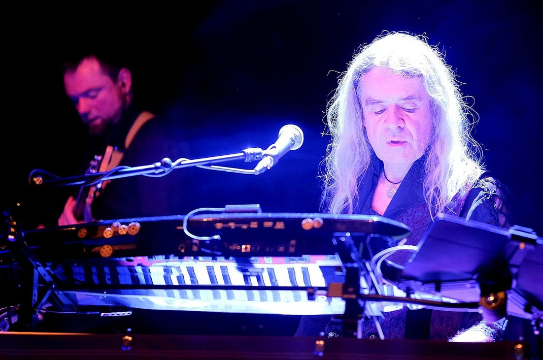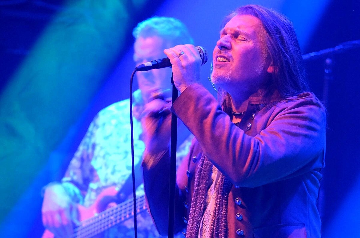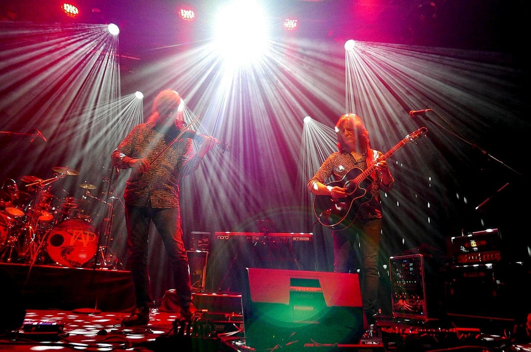 Aber das Traurige zuerst: Das Septett The Ancestry Program (TAP) aus dem Großraum München hatten leider ihr Gründungsmitglied und prägenden Gitarristen Mani Gruber aus gesundheitlichen Gründen nicht mit zu den zwei Prog-Gipfeln nach Oberhausen und Rüsselsheim mitbringen können. Deshalb mussten die Rollen im diesmal nun Quintett etwas neu verteilt werden, denn eigentlich hat TAP vier Saitenkünstler. Mike Voglmeier übernahm die Position von Mani, Tastenvirtuose Thomas Burlefinger ergänzte an der elektrischen 6-saitigen, Marco Osmajic angestammt, konzentriert am Bass und der charismatische Front-Sänger Ben Knabe setzte wie gewohnt Akzente stimmlich und Klangtupfer mit seiner Pedal-Steel-Gitarre. Als ich die Musik von TAP vor Jahren zum ersten Mal hörte, war ich überrascht von dieser komplexen, teils aber auch verspielten Musik mit Wurzeln in verschiedenen Ecken des Rock. Meine Überlegungen: Wie kann man so eine Musik Live präsentieren ?? Wie gut könnte es werden ?? Stephan und ich haben es jetzt 2-mal kurz hintereinander an zwei Orten erlebt (mit Reichenbach 2023 auf insgesamt nun drei Bühnen). Antwort: Mit Könnern an den Instrumenten, aber besonders auch mit einem homogenen Gefüge innerhalb der Band. Der Kuschelfaktor zeigte mir hier am Main die Harmonie der Musiker untereinander. Trotz einem Mann weniger auf dem Spiel-Platz, hatte man nicht eine Minute das Gefühl hier sind im Klangteppich Lücken oder Fehlstellen. Frontsänger und Steel-Gitarre-Spieler Ben Knabe sagte mir vor dem Auftritt: „Ich stecke voller Energie, werde heute für Mani und für meine Familie alles geben.“ Und er hat Wort gehalten !! War er beim Artrock-Festival 2023 noch etwas zurückhaltender, hier in Rüsselheim am Main war Ben wie entfesselt und immer in Bewegung, suchte ständig den Kontakt zu den Mitspielern. Tieftöner Marco und der grölende Schlagzeuger Andy Lind sorgten wie gewohnt für das stabile Fundament auf dem die drei Frontmänner stark aufbauen konnten. Andy, Mike und Thomas waren wie immer typisch als Ahnenforscher kostümiert und waren ständig in Bewegung. Thomas verließ immer mal wieder mit Gitarre oder mobilen Keyboard seinen Hauptarbeitsplatz hinter der Tasten-Burg. Das fachkundige Publikum beobachte wie gebannt das Geschehen auf der gut beleuchteten Bühne, honorierte den starken Auftritt immer wieder berechtigt mit Szenen-Applaus. Und den hat stellvertretend Mani Gruber auch verdient, alles gute bayrischer Ahnenforscher für deinen weiteren Weg.