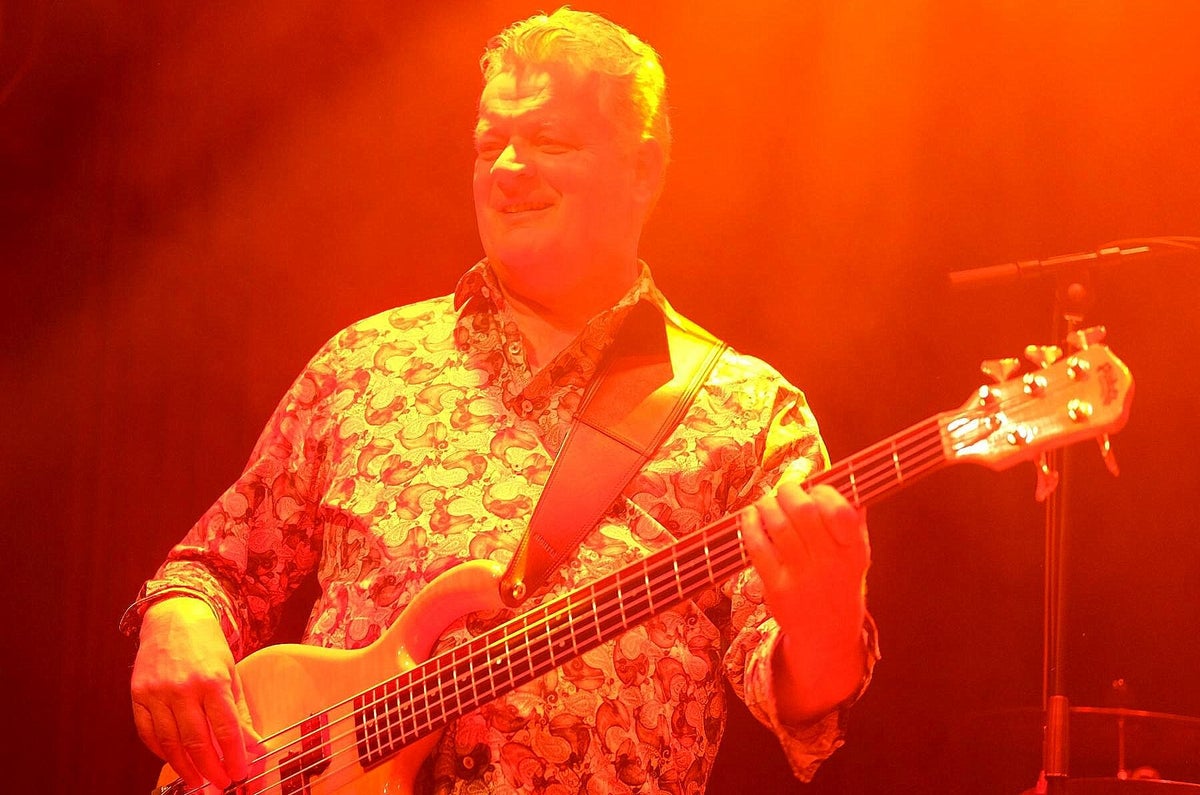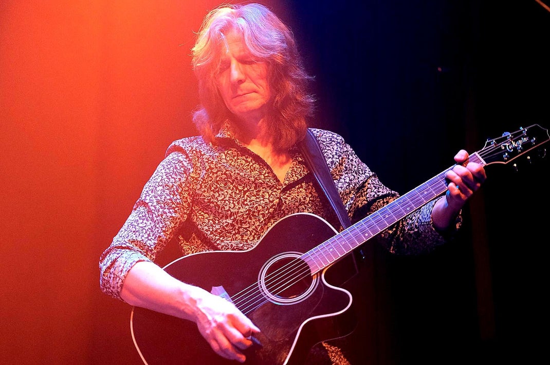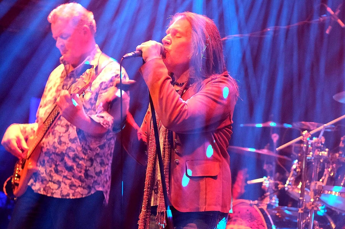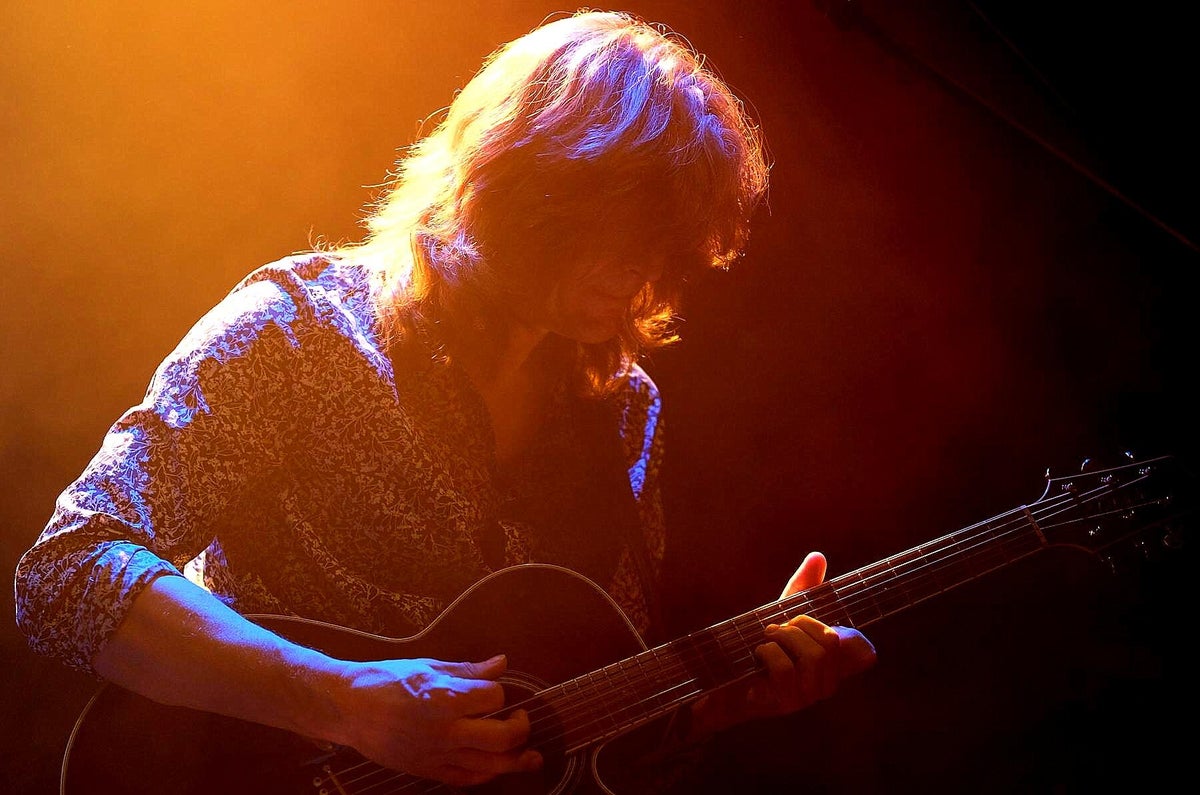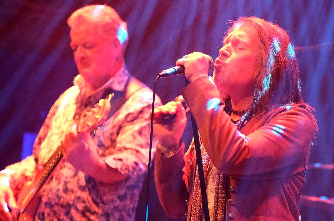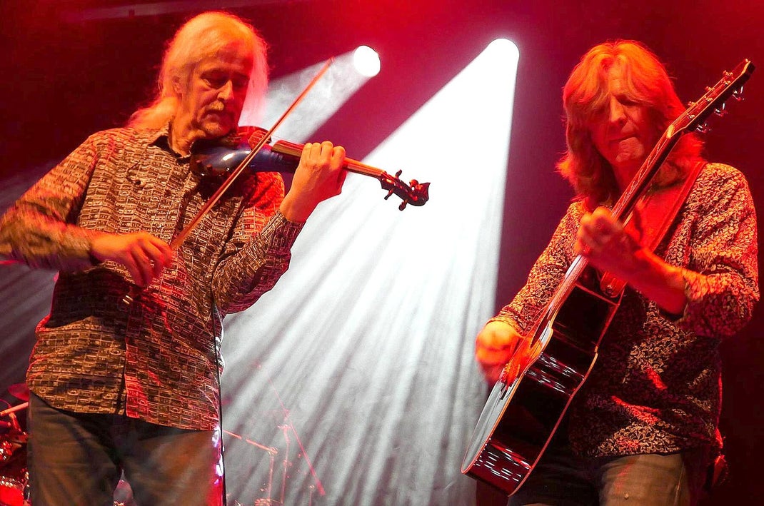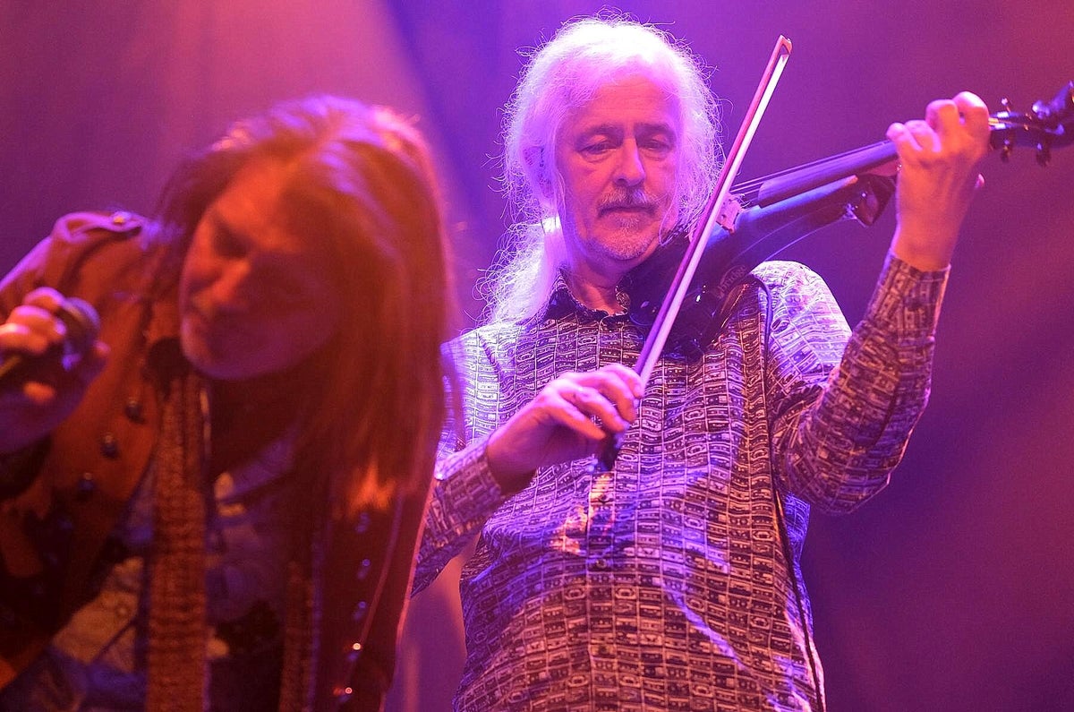 Aber das Traurige zuerst: Das Septett The Ancestry Program (TAP) aus dem Großraum München hatten leider ihr Gründungsmitglied und prägenden Gitarristen Mani Gruber aus gesundheitlichen Gründen nicht mit zu den zwei Prog-Gipfeln nach Oberhausen und Rüsselsheim mitbringen können. Deshalb mussten die Rollen im diesmal nun Quintett etwas neu verteilt werden, denn eigentlich hat TAP vier Saitenkünstler. Mike Voglmeier übernahm die Position von Mani, Tastenvirtuose Thomas Burlefinger ergänzte an der elektrischen 6-saitigen, Marco Osmajic angestammt, konzentriert am Bass und der charismatische Front-Sänger Ben Knabe setzte wie gewohnt Akzente stimmlich und Klangtupfer mit seiner Pedal-Steel-Gitarre. Als ich die Musik von TAP vor Jahren zum ersten Mal hörte, war ich überrascht von dieser komplexen, teils aber auch verspielten Musik mit Wurzeln in verschiedenen Ecken des Rock. Meine Überlegungen: Wie kann man so eine Musik Live präsentieren ?? Wie gut könnte es werden ?? Stephan und ich haben es jetzt 2-mal kurz hintereinander an zwei Orten erlebt (mit Reichenbach 2023 auf insgesamt nun drei Bühnen). Antwort: Mit Könnern an den Instrumenten, aber besonders auch mit einem homogenen Gefüge innerhalb der Band. Der Kuschelfaktor zeigte mir hier am Main die Harmonie der Musiker untereinander. Trotz einem Mann weniger auf dem Spiel-Platz, hatte man nicht eine Minute das Gefühl hier sind im Klangteppich Lücken oder Fehlstellen. Frontsänger und Steel-Gitarre-Spieler Ben Knabe sagte mir vor dem Auftritt: „Ich stecke voller Energie, werde heute für Mani und für meine Familie alles geben.“ Und er hat Wort gehalten !! War er beim Artrock-Festival 2023 noch etwas zurückhaltender, hier in Rüsselheim am Main war Ben wie entfesselt und immer in Bewegung, suchte ständig den Kontakt zu den Mitspielern. Tieftöner Marco und der grölende Schlagzeuger Andy Lind sorgten wie gewohnt für das stabile Fundament auf dem die drei Frontmänner stark aufbauen konnten. Andy, Mike und Thomas waren wie immer typisch als Ahnenforscher kostümiert und waren ständig in Bewegung. Thomas verließ immer mal wieder mit Gitarre oder mobilen Keyboard seinen Hauptarbeitsplatz hinter der Tasten-Burg. Das fachkundige Publikum beobachte wie gebannt das Geschehen auf der gut beleuchteten Bühne, honorierte den starken Auftritt immer wieder berechtigt mit Szenen-Applaus. Und den hat stellvertretend Mani Gruber auch verdient, alles gute bayrischer Ahnenforscher für deinen weiteren Weg.