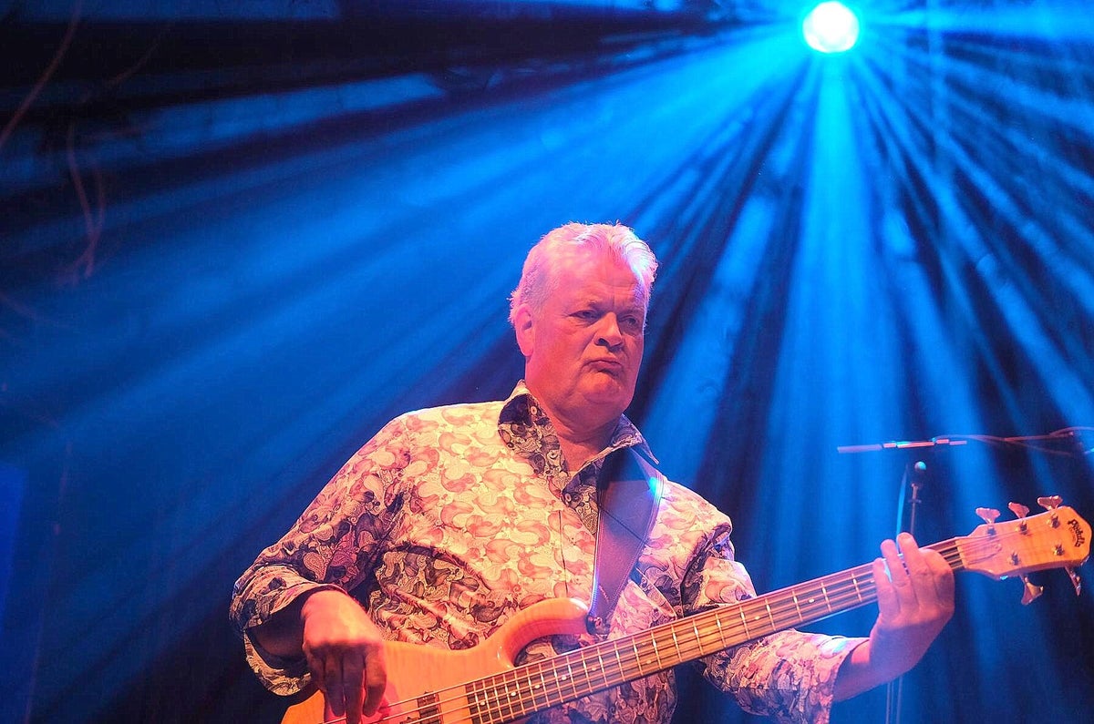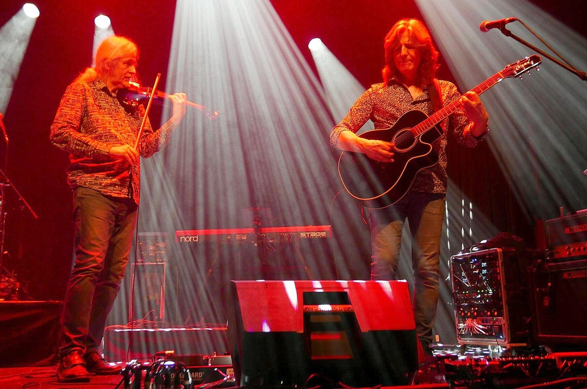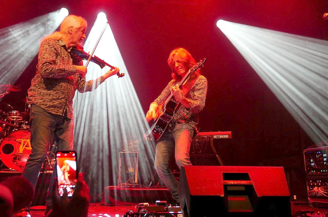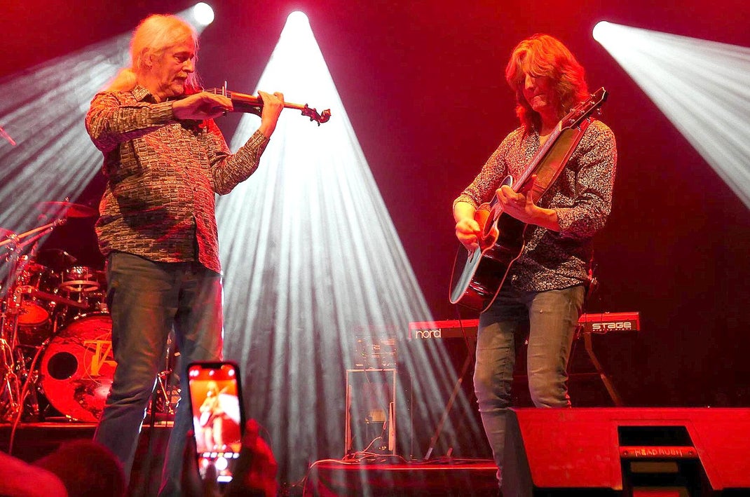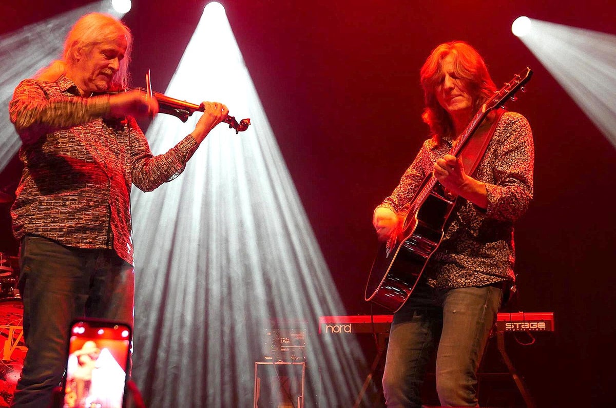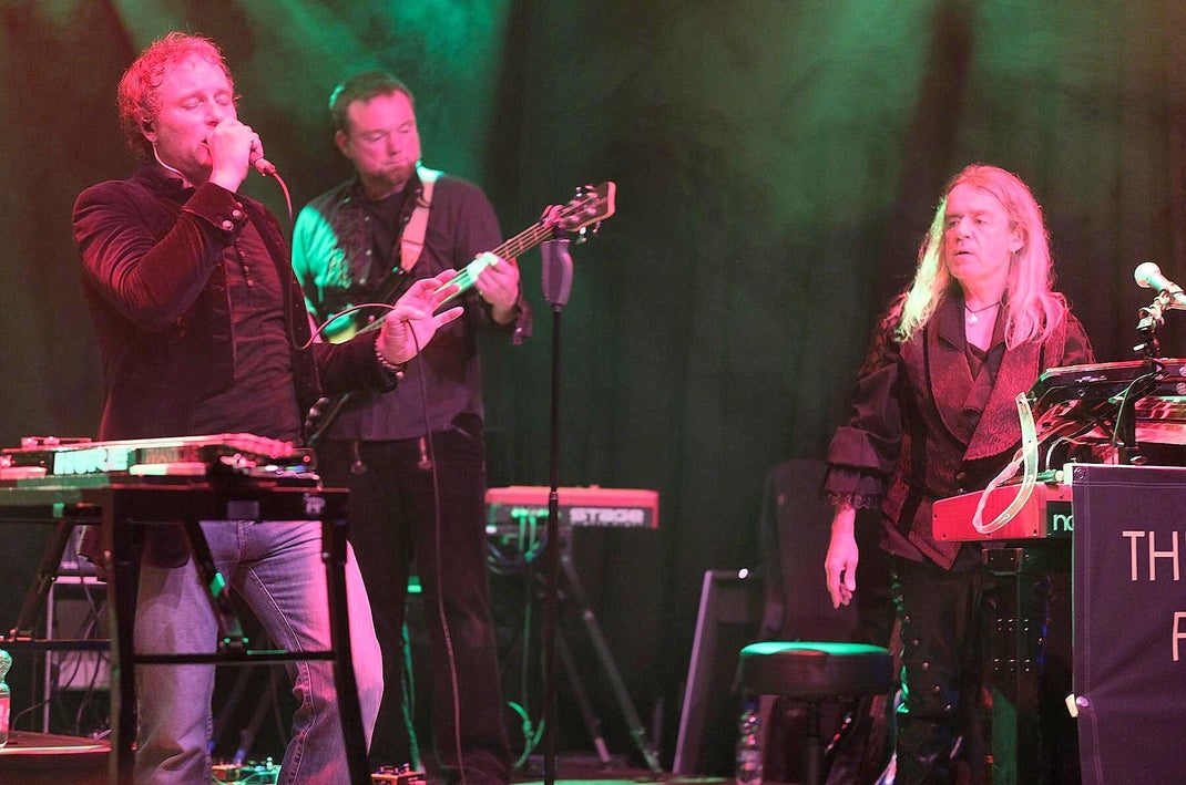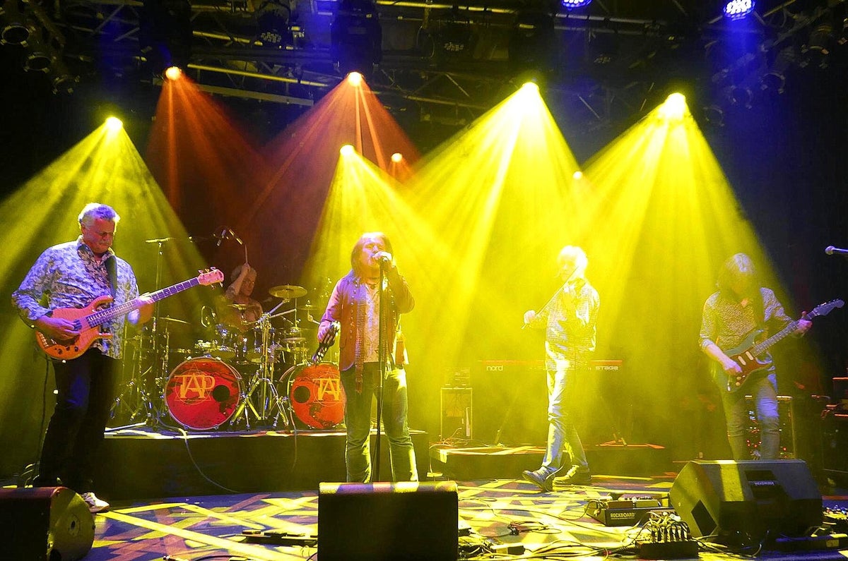 Beim fliegenden Zirkus vom Niederrhein auch das Traurige zuerst: der Stamm-Bass-Mann Roger Weitz konnte auch aus gesundheitlichen Gründen nicht seine Band Flying Circus (FC) unterstützen. Der erfahrene Fels in der Brandung Dietmar Berteld machte es aber auch sehr gut. Auch hier ein deutsches Rock-Filetstück das schon gefühlt ewig musiziert, von den beiden Michaels (Dorp und Rick) Winter 1989 in der linksrheinischen Kleinstadt Grevenbroich gegründet wurde und die inzwischen über ein Dutzend sehr gute Alben veröffentlicht haben. Bei den beiden Prog-Gipfeln stehen besonders die Konzept-Alben Starlight Clearing (2016), erzählt wird eine kontinuierliche Geschichte über eine fiktive Band im London der späten 60er sowie das Lieder-Bündel 1968 (2020), wo verschiedene historische Ereignisse dieses bedeutsamen Jahres musikalisch lebendig gemacht werden, zentral auf der Titelliste. Aber auch ein Potpourri von Liedern der anderen Werke werden gespielt. Wieder einmal erlebe ich Live wie diese fünf Musiker, links und rechts auf der Bühne noch Schlagzeuger Ande Roderigo und Rüdiger Blömer (Keyboards, Geige), problemlos die Gäste im Club begeistern und mit ihrer rockigen Darbietung nahtlos an die vorherige Vorstellung von The Ancestry Program anknüpfen. Ein gemischtes Doppel das so sicher auch noch auf jeder anderen Bühne eine gute Figur machen wird. Das Quintett Flying Circus hat nach der elendigen Pandemie beschlossen, noch einmal alle Kräfte zu sammeln und mit wehenden Fahnen auf sich aufmerksam zu machen, das klappt äußerst gut. Schaut auch mal auf deren Web-Seite vorbei. Es ist sehr erfreulich, dass in den Clubs im deutschsprachigen Raum auch wieder verstärkt heimische Bands das Publikum bespielen und den Besuchern die Kinnladen reihenweise runterklappen, überrascht darüber, dass wir in unserem Land fantastische eigene Rock-Truppen haben. Und das haben inzwischen auch neue Veranstalter mitbekommen und werden dieses Jahr und ebenso 2026 zu mehrtägigen Festivals einladen. Auch TAP und FC haben an diesen beiden Abenden ihre Visitenkarten abgegeben. Wieder einmal muss ich der Licht- und Tontechnik des Veranstalters (Das Rind) ein Kompliment machen, sehr kurze Umbaupause, Ton an jeder Position im Saal sehr transparent, das gestaffelte Licht über die gesamten drei Stunden ausgewogen und gut akzentuiert. Daran müssen sich die anderen Musik-Clubs in unserer heimischen Region messen lassen und tun dies erfreulicherweise auch. Bilder L_R unten: Michael Rick, Michael Dorp, Rüdiger Blömer, Roger Weitz, Ande Roderigo, Doppel-Michael & Rüdiger
