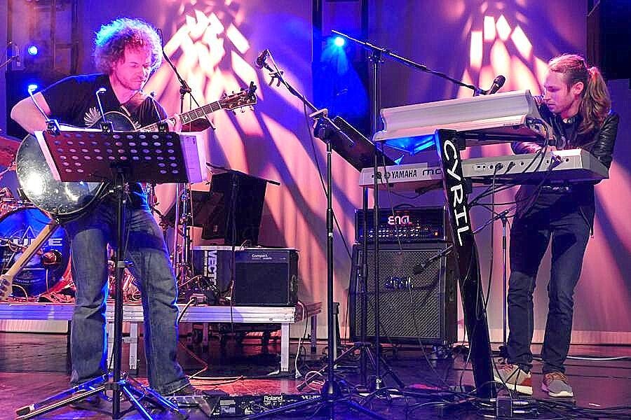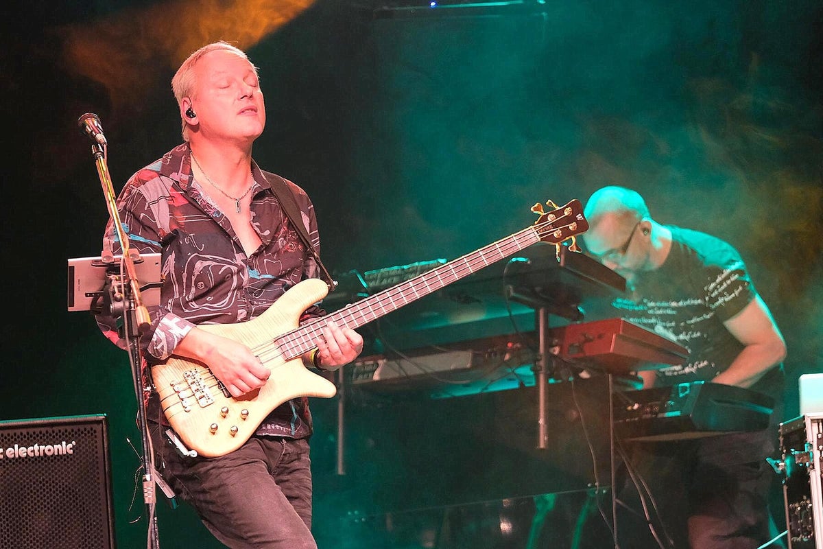 Da nimmt auch schon mal Mariusz Duda, Colin Bass, Marta oder andere vor dem Mikrofon Platz und unterstützt Vokal. Michał bringt seine Frau Marta Wojtas (Perkussion, Gesang) sowie Kornel Popławski (Keyboards) und Konrad Zieliński (Schlagzeug) mit in das Vogtland. Seit dem fulminanten Auftritt beim letztjährigen ARF VII bin ich ein großer Fan der fünf jungen Plauener Stadt-Musiker von Polis. Sie haben inzwischen nach »Eins« (2011), »Sein« (2014) ihr wunderbares drittes Album »Weltklang« (2020) bei Progressive Promotion Records veröffentlicht und das steht diesmal auch deutlich im Zentrum des Auftritts. Es wird komplett ohne das »Abendlied« gespielt und wie !! Für mich genauso überraschend wie letztes Jahr der Tasten-Magier Claudio Simonetti`s Goblin mit seinem Quartett, ist Saiten-Hexer Andrea Braido. Er lernt mit vier (4) Jahren Schlagzeug, im Alter von 12 Bass & Gitarre, spielte bis zu seinem Wechsel in die USA mit 20 in einem ganzen Bündel von Bands. Er ist im Jazz, wie auch im Rock zuhause, gehört zu den immer wieder gefragten Helfern wenn es im Studio mal kniffeliger wird und ein Maestro hermuss.