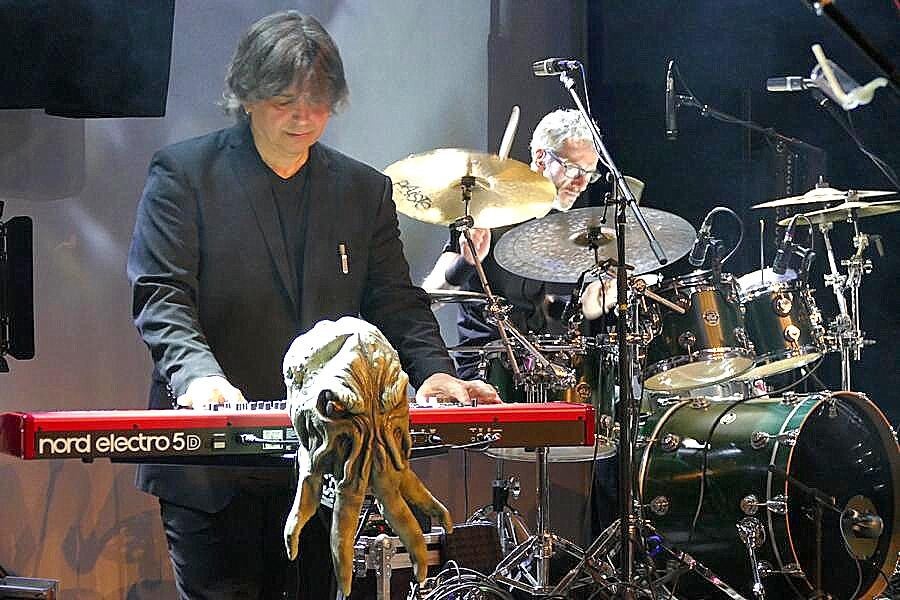 Allein die Anzahl seiner Solo-Veröffentlichungen ist seitenfüllend. Der italienische Filmkomponist liefert mit seinen Mitstreitern eine Mischung aus instrumentalen Stücken an, die weitestgehend als rockige Soundtracks zu definieren sind. Ein Horrorfilm-Vibe ohne den eigentlichen Horrorfilm? Dicke Kirchenorgelteppiche des Tastenmeisters machen es möglich. Auch hier bieten Einspieler per Beamer eine gute Erweiterung. Cecilia Nappo am Bass spielt sich zwischen Keyboard und Gitarre immer wieder in den Vordergrund und beweist wie wichtig und vielseitig auch Lead-Lines am sonst oft untergeordneten Bass sein können. Gegen Mitternacht endet die Reise in musikalische Filmlandschaften und langsam leeren sich die Plätze mit Vorfreude auf das, was noch kommen mag.